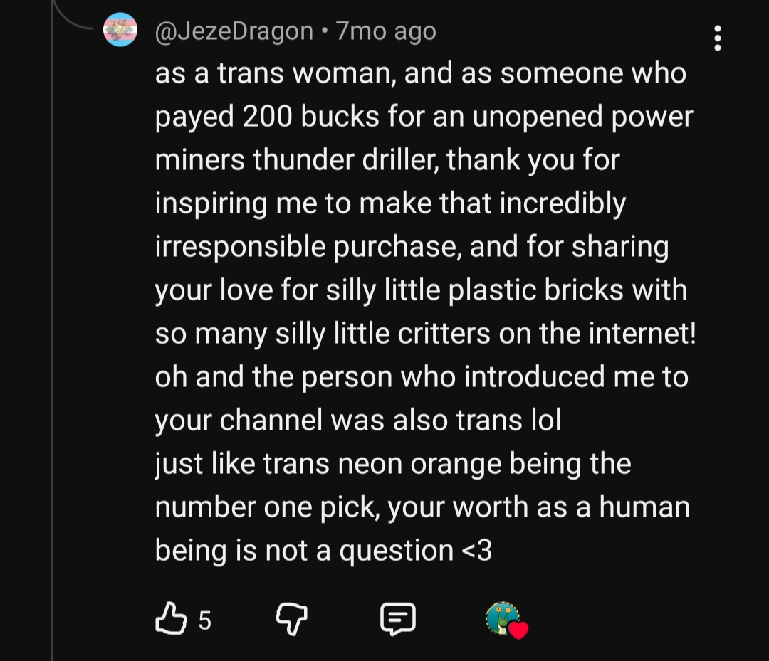 At least by encouraging trannies to buy overpriced 90s lego sets it means that money isn't being spent on HRT...