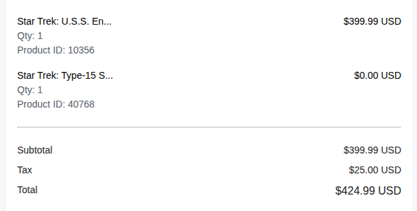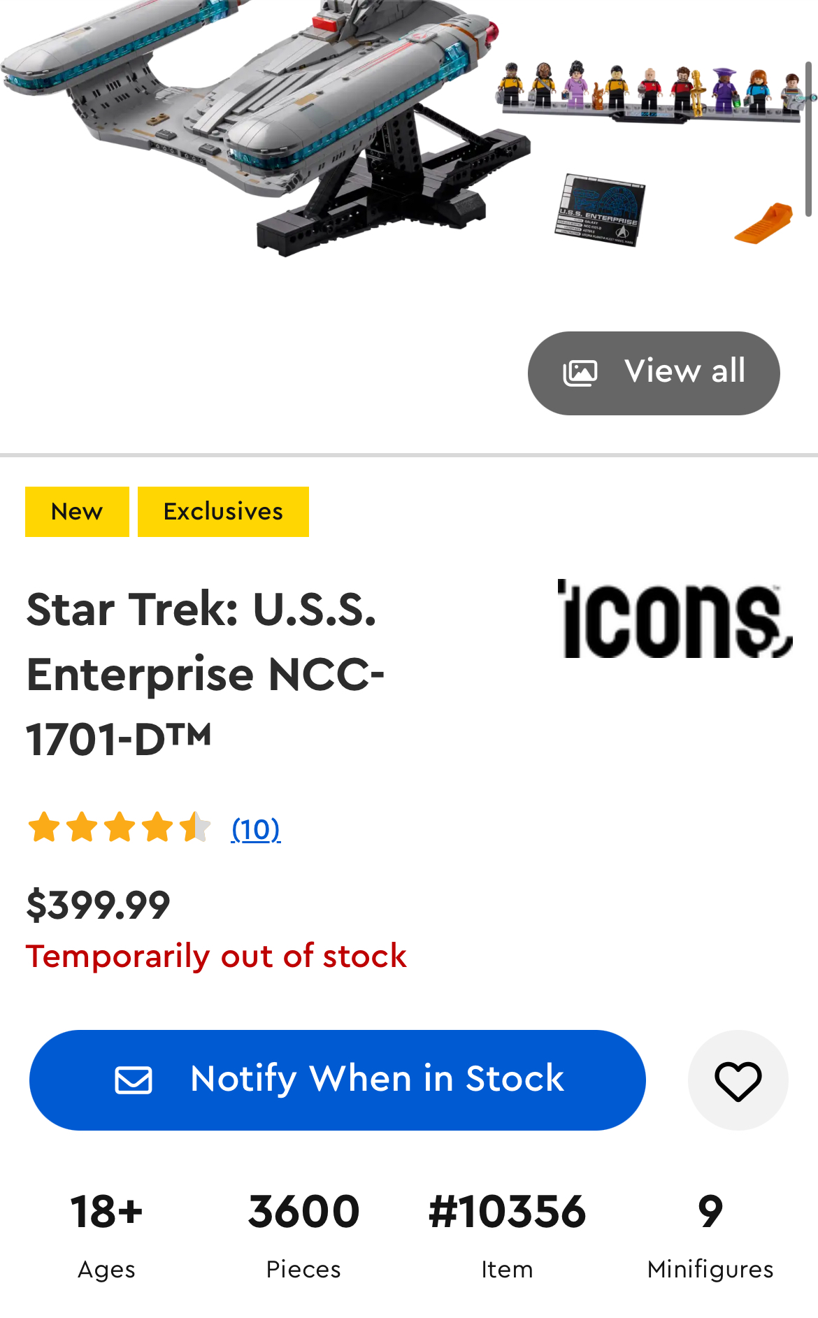 NCC 1701-D is now sold out. And the shuttle bonus is out of stock as well. If you wanted it, hope you got it