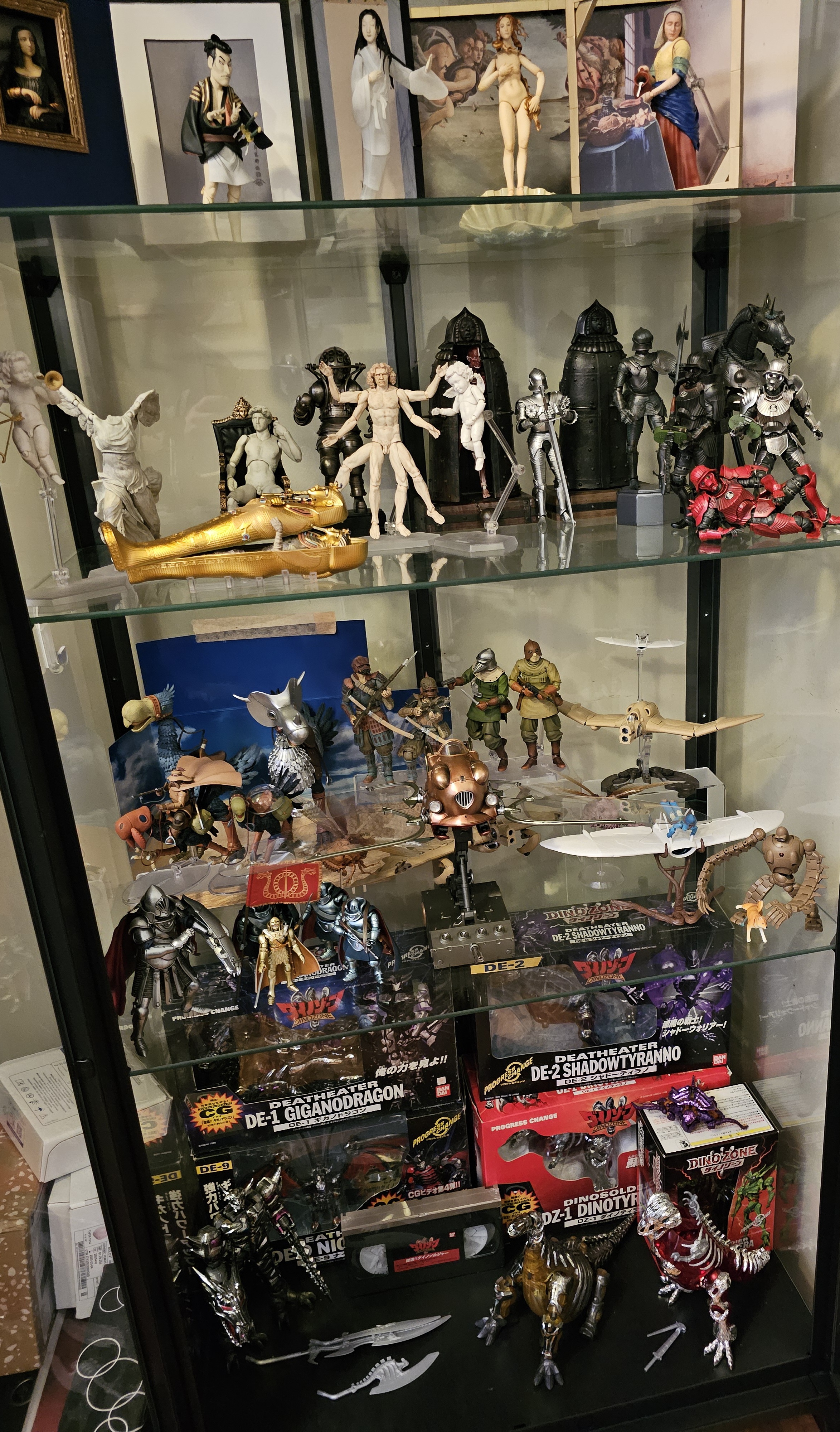 Not pictured is a Revoltech Spiderman 2.0, Supergirl and the Figma Guyver, tempted to sell them along with Makima for future releasesNext year I'll get proper shelving; or a cabinet.