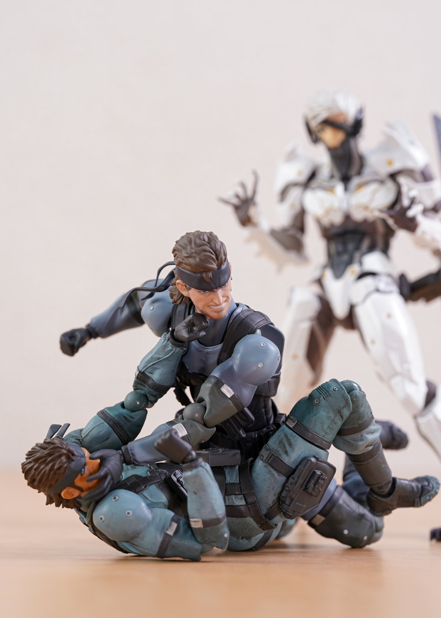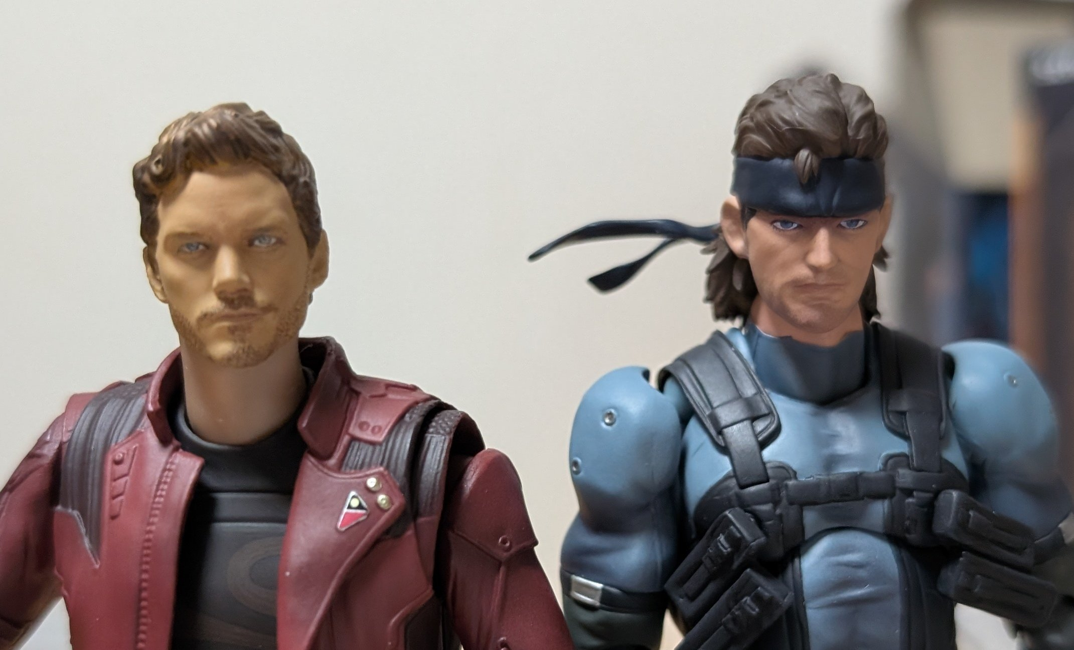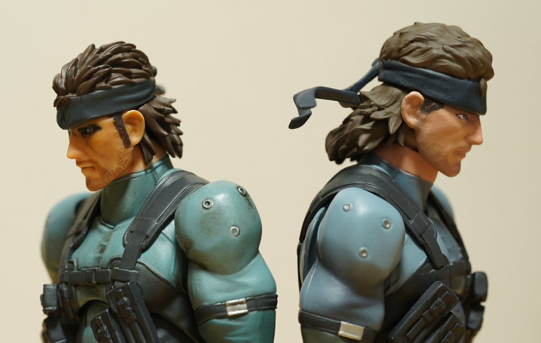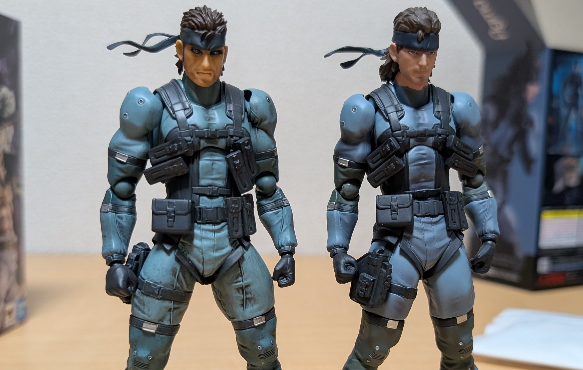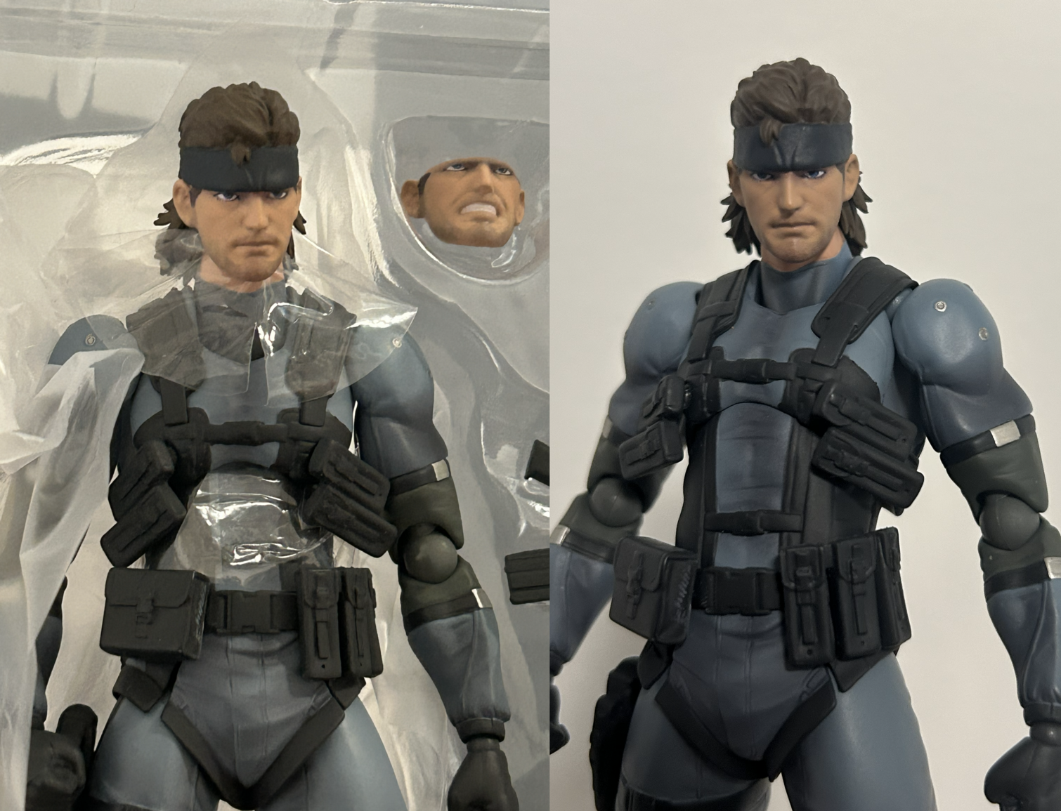 I think the faces are OK in hand, not as good as advertised for sure but strangely they do reminds me of how snake look in some of the sence of original mgs3. My major complain here is actually that the hip joints and one of the troso joint are very loose when I open the box so I had to tightening them and they still got too easy to pop off when I was playing with the figure. Not a fan of some of the engineering from articulation stand point but since I'm a big fan of Shinkawa Yoji I appreciate how they keep the sculpt looking good.