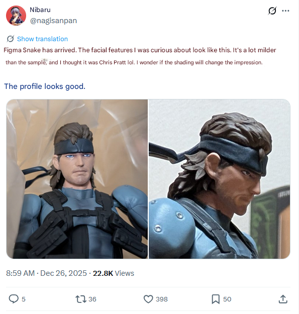 >Shipping out from the 25th of December 2025:- figma Solid Snake: MGS2 ver. Updated Edition >Delayed from December 2025 to January 2026:- figma Splatoon Boy: DX Edition- figma Off the Hook - ex:ride Small Dinosaur (Ash)- ex:ride Small Dinosaur (Brown)- KILL la KILL[BUZZmod.]Ryuko Matoi 1/12 scale action figure>Delayed from December 2025 to February 2026:- figma Hatsune Miku NT