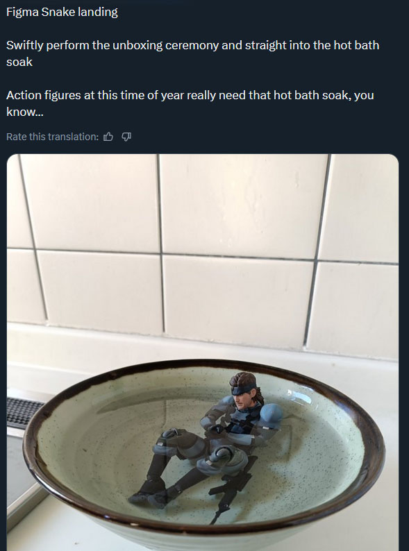 >>11661155>That is NOT Solid Snake.>>11661167>>11661169Not mine, just digging through Japanese twitter