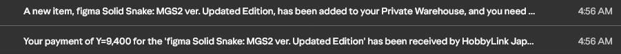 >Miku still wasn’t in hlj warehouse >ask them>added the very next morningGuess sometimes it helps to follow up on shit, I was really worried they’d over-sold PO stock again. She and toobee will soon be mine