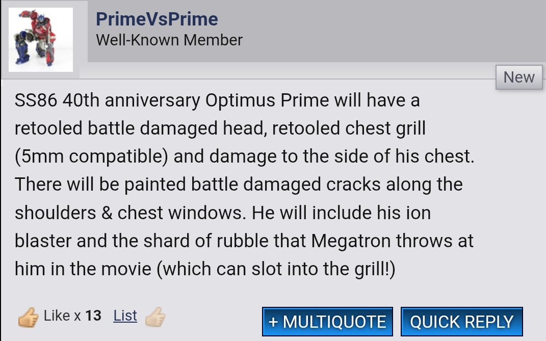 >>11659730His gimmick is light-piping.And Quintus looks cool, which puts him above all the other deluxe Primes. But yeah, the transformation is basically nothing, though I do like the altmode.>>11659825I'm not overly concerned about the PVC parts since the front piece is painted, which at least suggests it shouldn't melt paint.