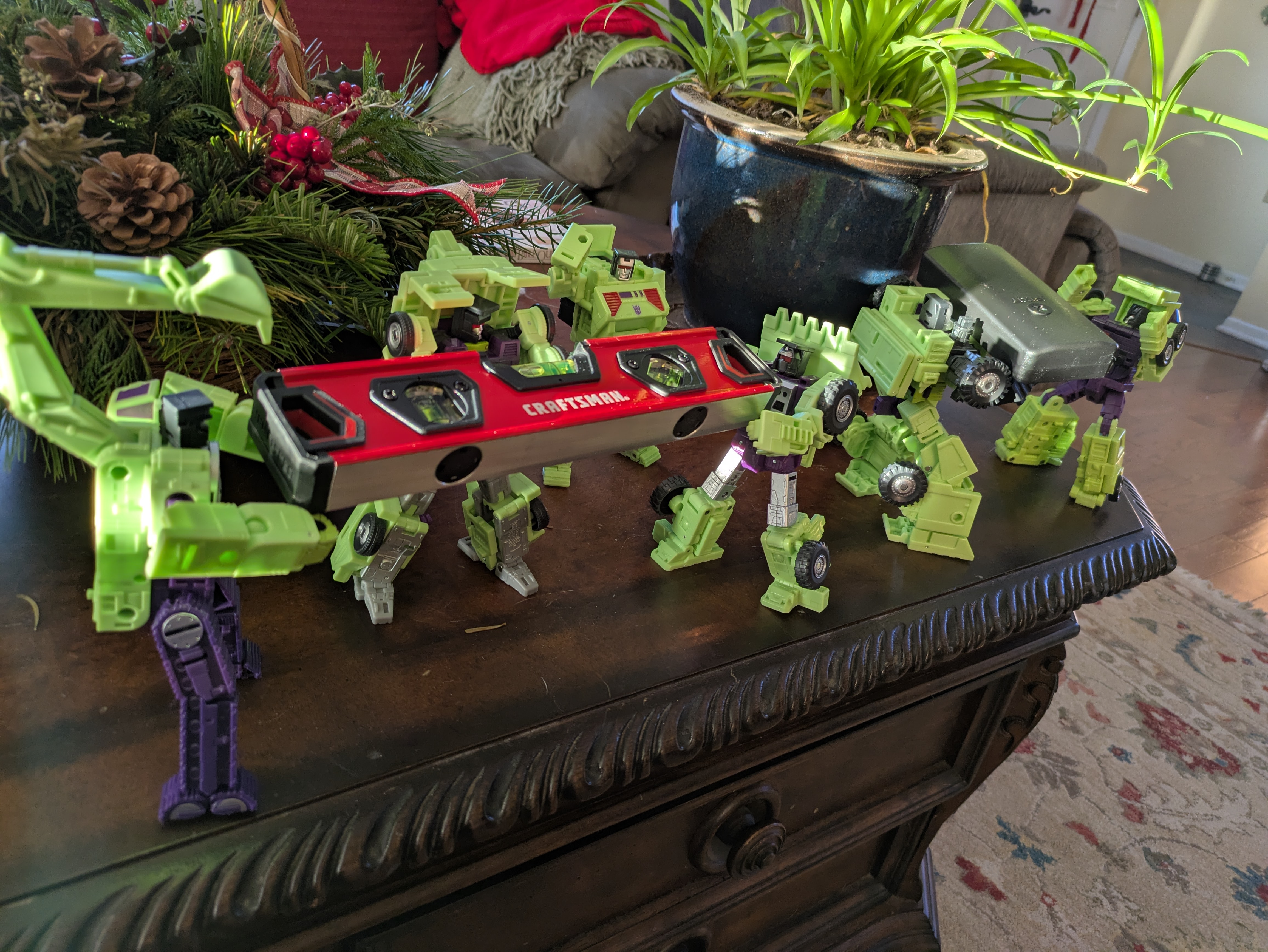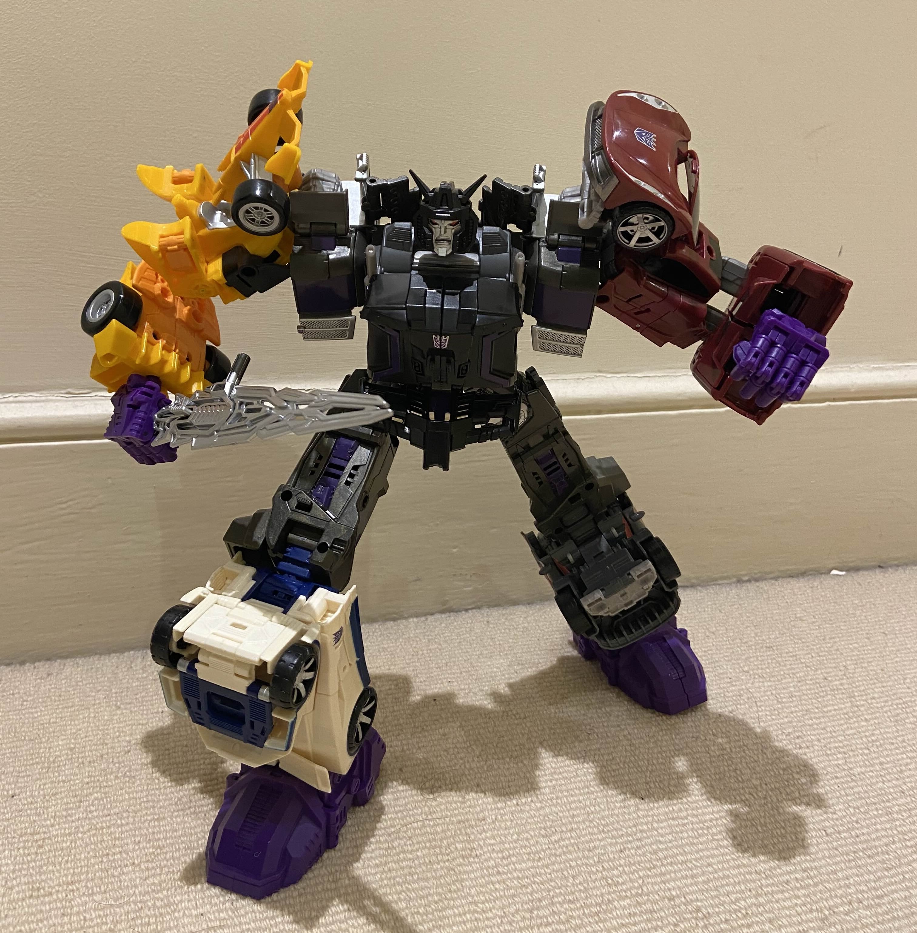 I got the first of the three DNA upgrades for Devastator in. Not gonna lie I'm glad I did, the forearms for Bonecrusher help a lot and whilst installation is a bear (and the altered transformation is a bit fiddly) the freed up waist joint MASSIVELY improves the figure. Didn't bother with the booties though, they don't really do much.