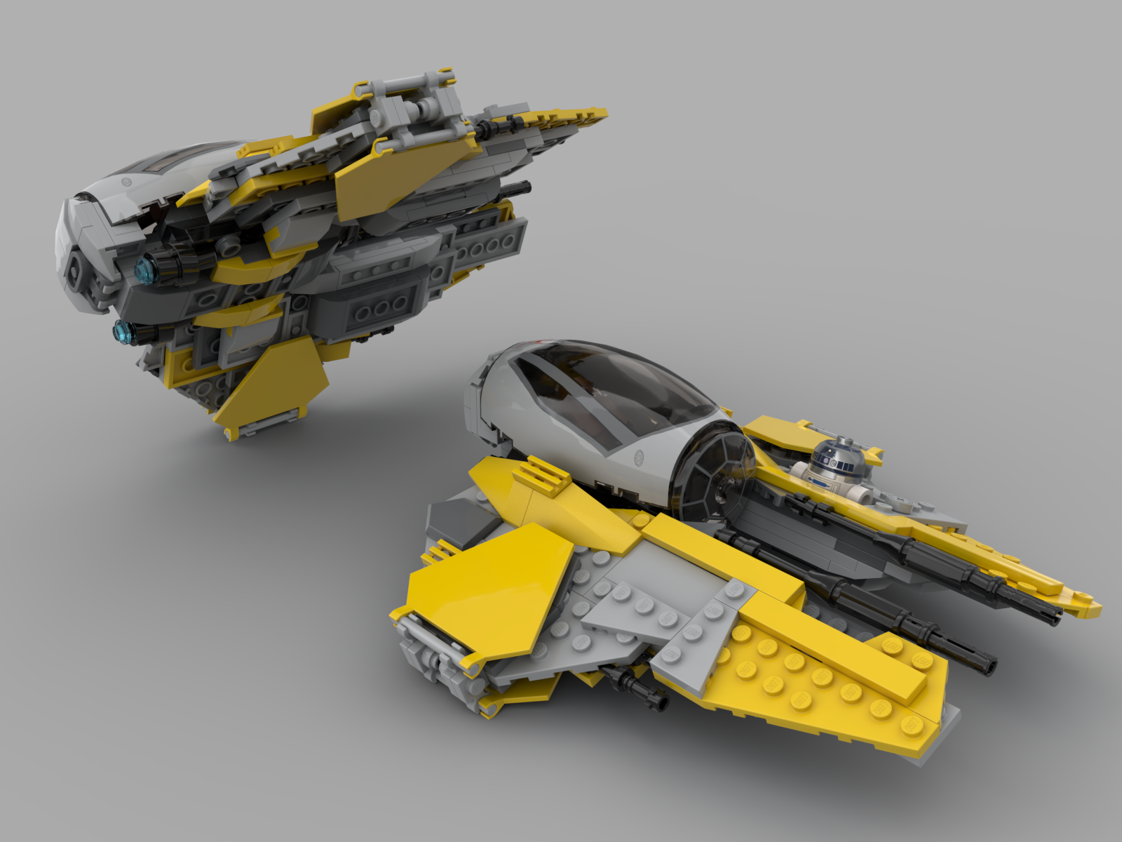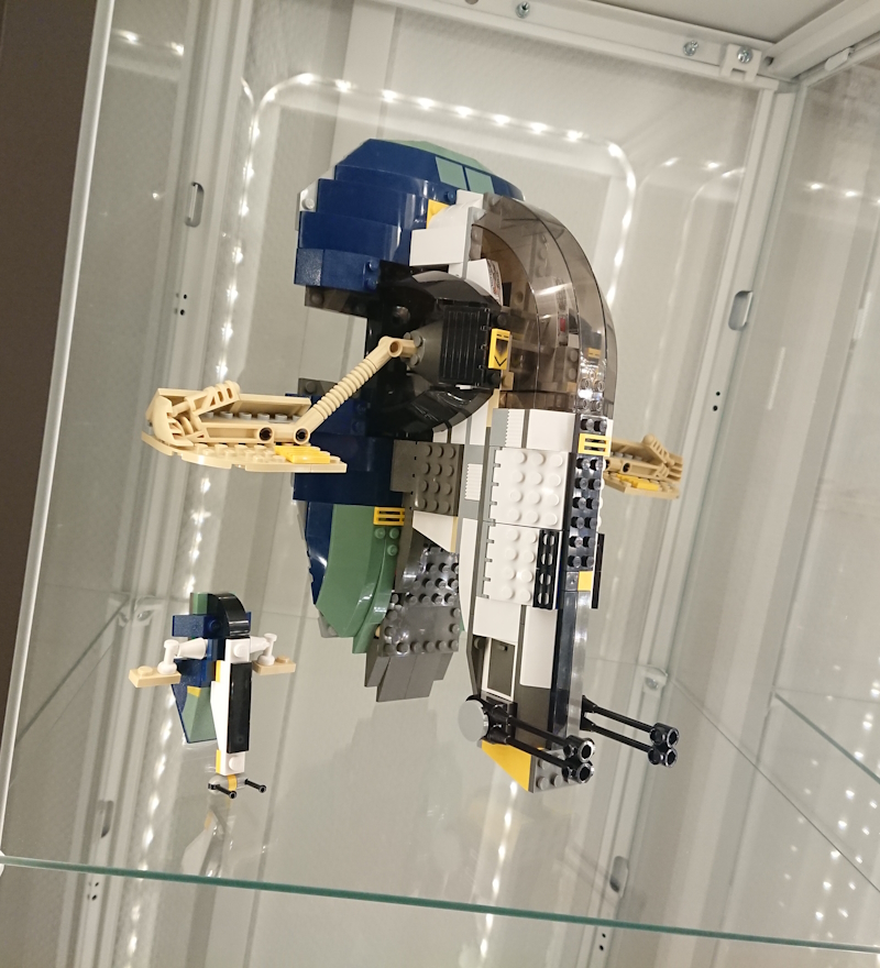 >>11666133I decided on no landing gear on this version.I actually modded it further and the wings are not hinged but angled with technic-axles so they don't bend up when you put the ship down them. And the underside on the wings that holds R2 hang very low, so I would need a long landing gear which would look ugly from the below-view