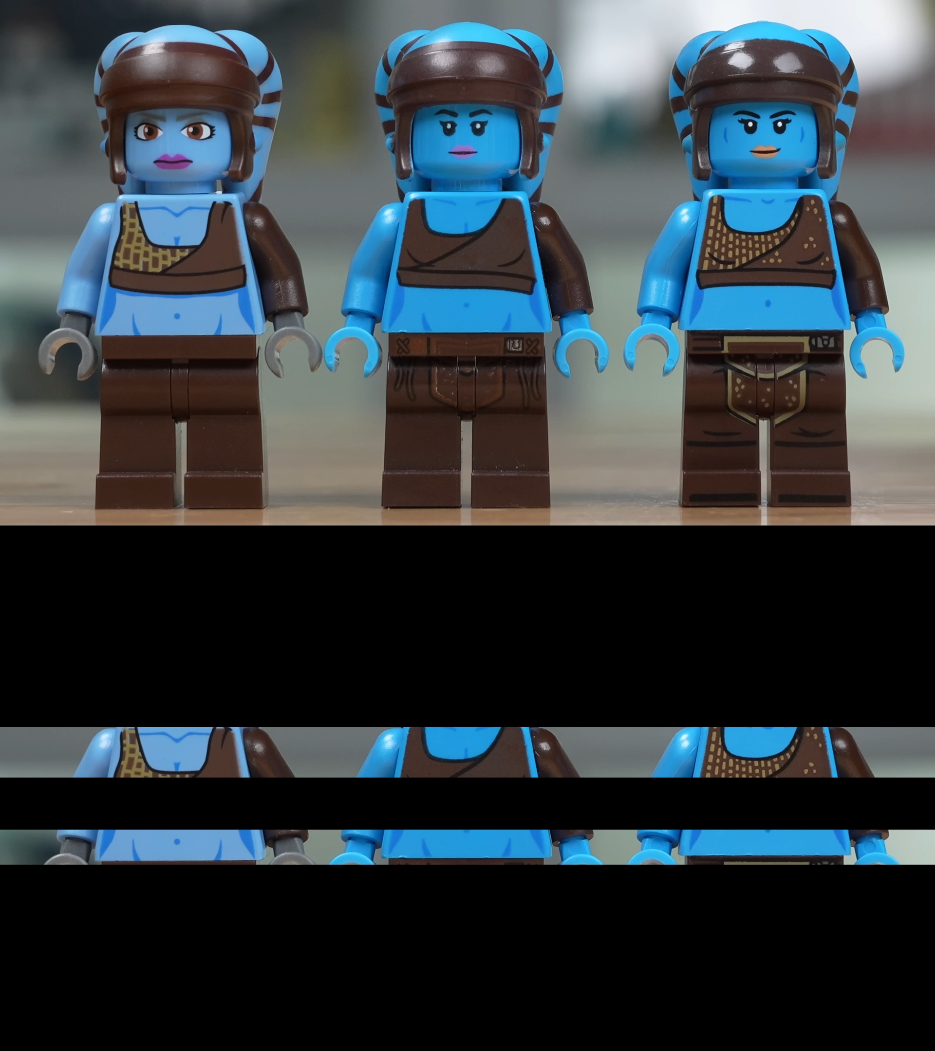>>11660677They all have good and bad about them.>Clone wars one has the best clarity of printing and most defined linework on the cleavage, clavicle, and vagina bones, but has that creepy, weird-ass clone wars style dead fish face, and skin is maybe too pale.>Middle one is probably best overall, but lacks the clothing detail any of the others have.>Newest one has the best clothing detail, and sharpest face print,I'm surprised they left the black lines under her tits alone in the new one. Also surprising that for as much detail as the old one has, it doesn't have those lines. Newest one also looks to have the sloppiest paint job for the wrappings on the lekku...