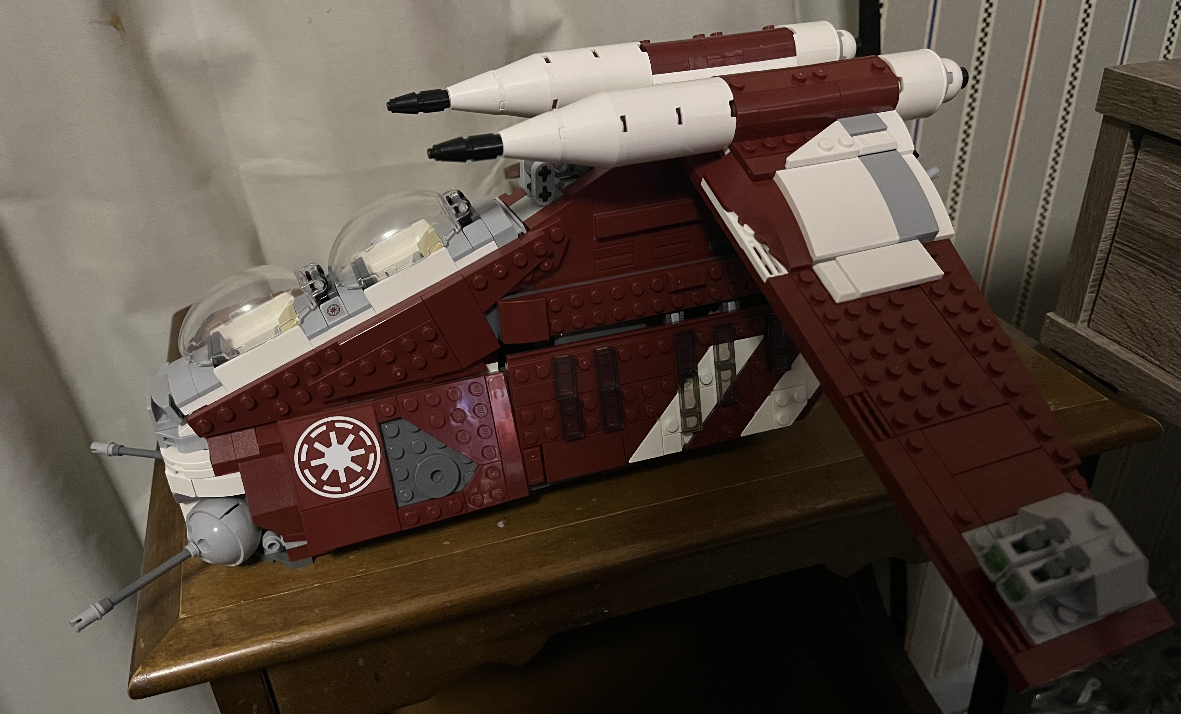 >>11663680This is how I feel about the 2007 Y-Wing.It has the most inaccurate cockpit shape but it will always look the best to me because of its nice smooth shape and surface which is a perfect contrast to the rest of the build which is all messy and bricky, the same contrast it has in-universe where it's basically stripped of all it's original armor except for the front.