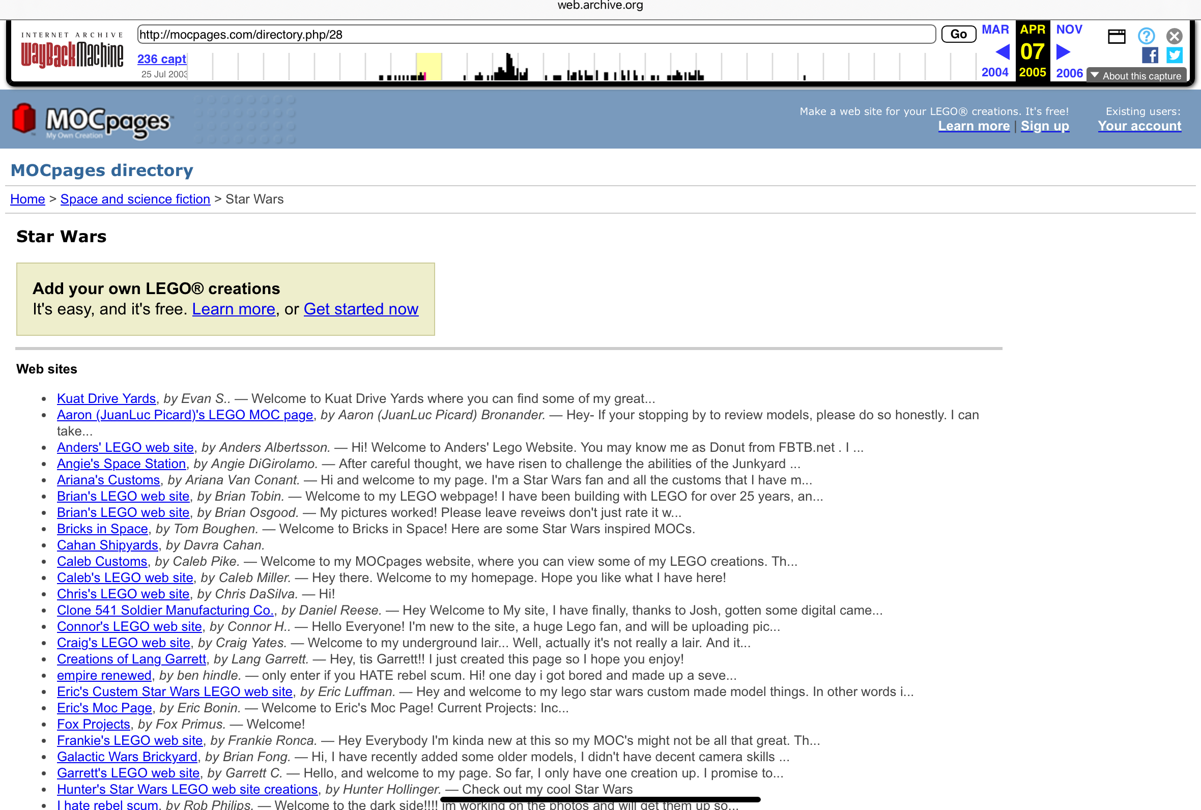 >>11667561I don't remember ever visiting that site. I loved the lego.com star wars gallery but very little remains of it. Post some nostalgic kino from mocpages if you found any,