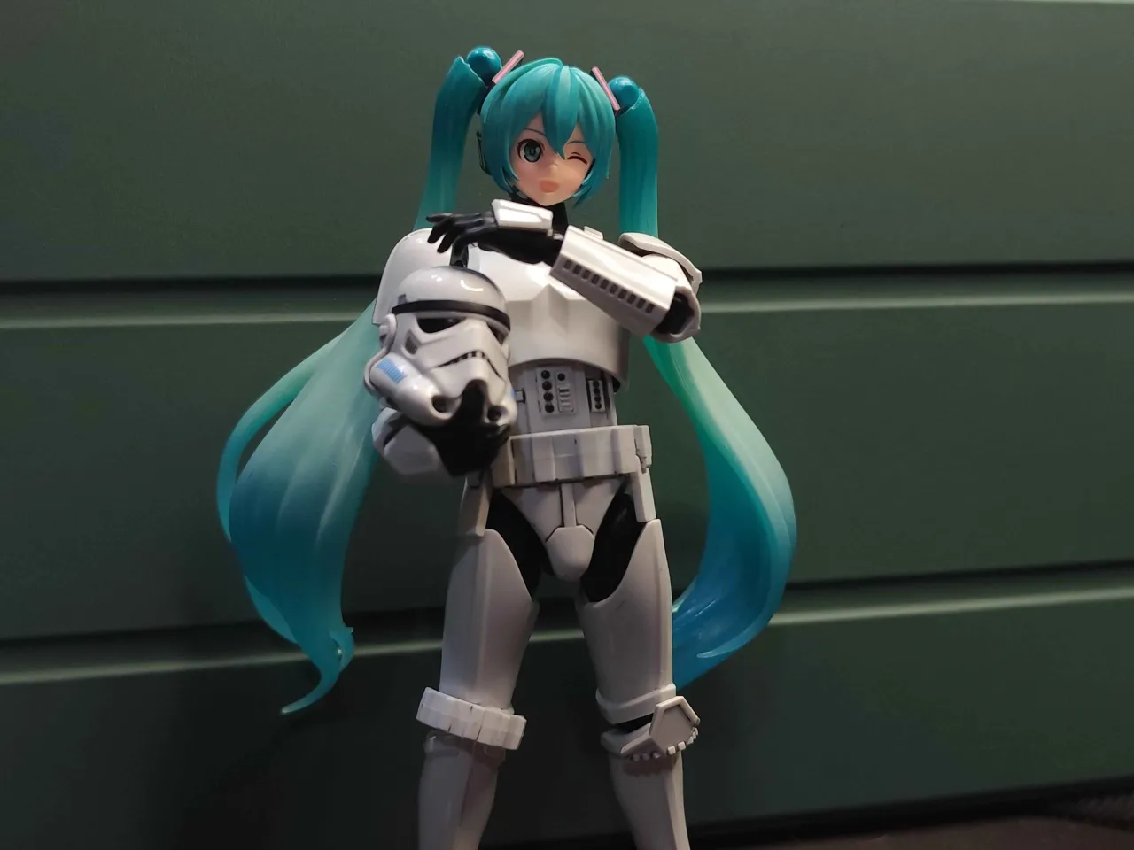 >>11658150I dont have the photos on my PC right now but here's one from recently. I put the Miku head on the Stormtrooper. Blokees will release a Luke and Han Solo version of the Stormtrooper and it gave me an idea with Miku. Miku's body is pretty good too.