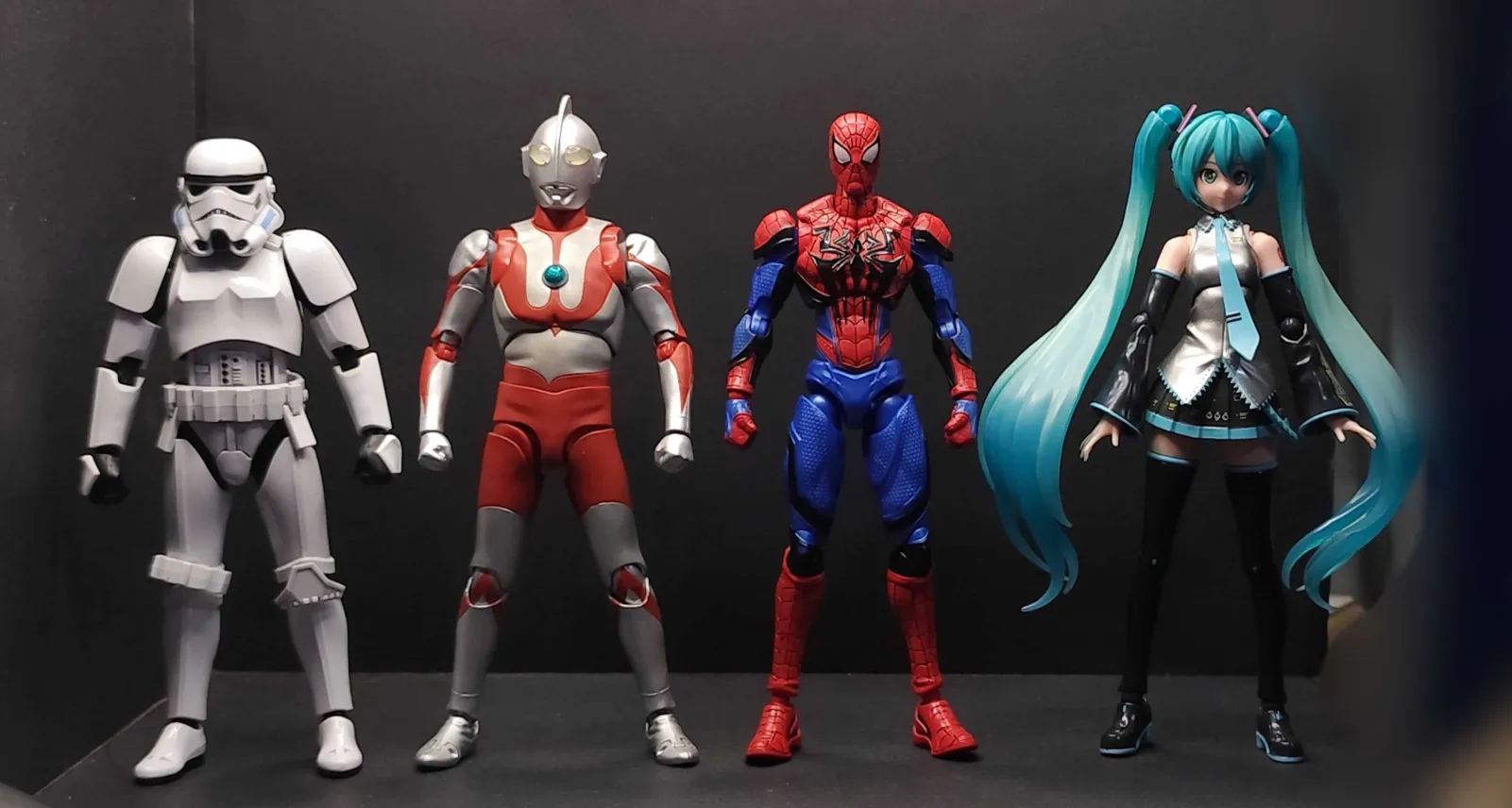 >>11668951Spidey and the Stormtrooper are from the Classic/Champions class while the Miku is from their Fantastics line. Couldn't tell you if they can exchange limbs though, sorry. I would say at least the Champions can but don't take my word for it.