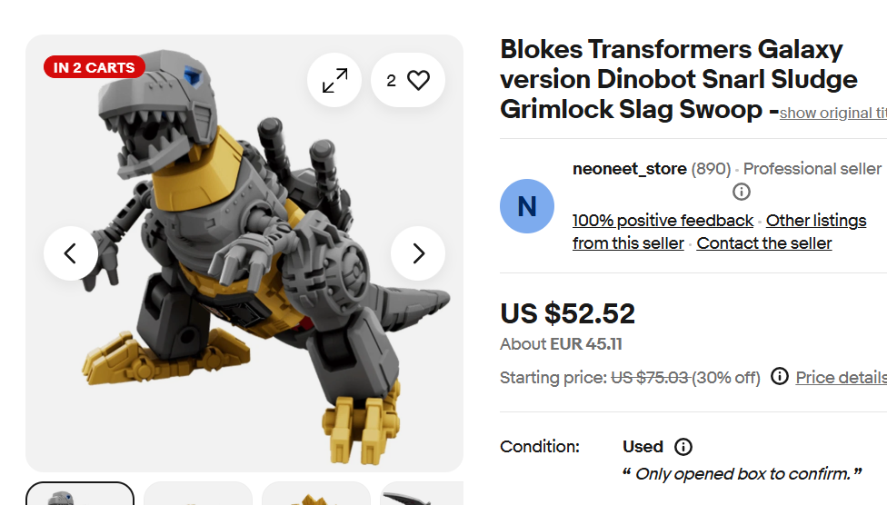 >>11676386>is this ebay? try asian sites like aliexpress or shopeethey are also expensivei guess it's because this Grimlock is from old releases?hmmm...I see blockes becoming more costly because people understand their value now