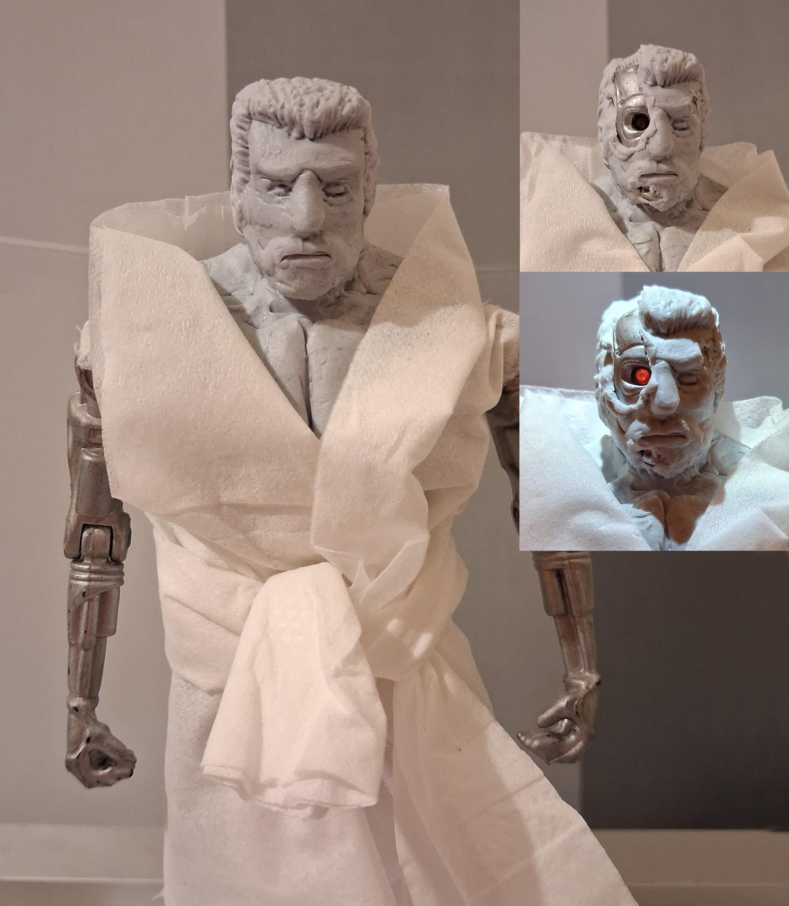 >>11659642>I remember using blu-tak to sculpt an Arnie head on top of the skull and making clothes out of tissue paper and tape so it could tear it all off as he got "damaged."Because I was feeling nostaligic I grabbed some Blu-Tak and had a quick go. Not my best sculpting job, I also used to use coloured chalk to add in flesh tones and stuff. Then when it was done I could just stretch out the tak and it would drop all the chalk dust off and be good as new.Take that limited use bio-regenerator powder!