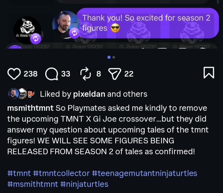 Previous thread: >>11651389Big news that's currently rippling through the toy world...Playmates will no longer have the TMNT license starting in 2027.Lots of speculation right now, but supposedly the license already has a new home. We just won't know with who, publicly, for a bit yet.