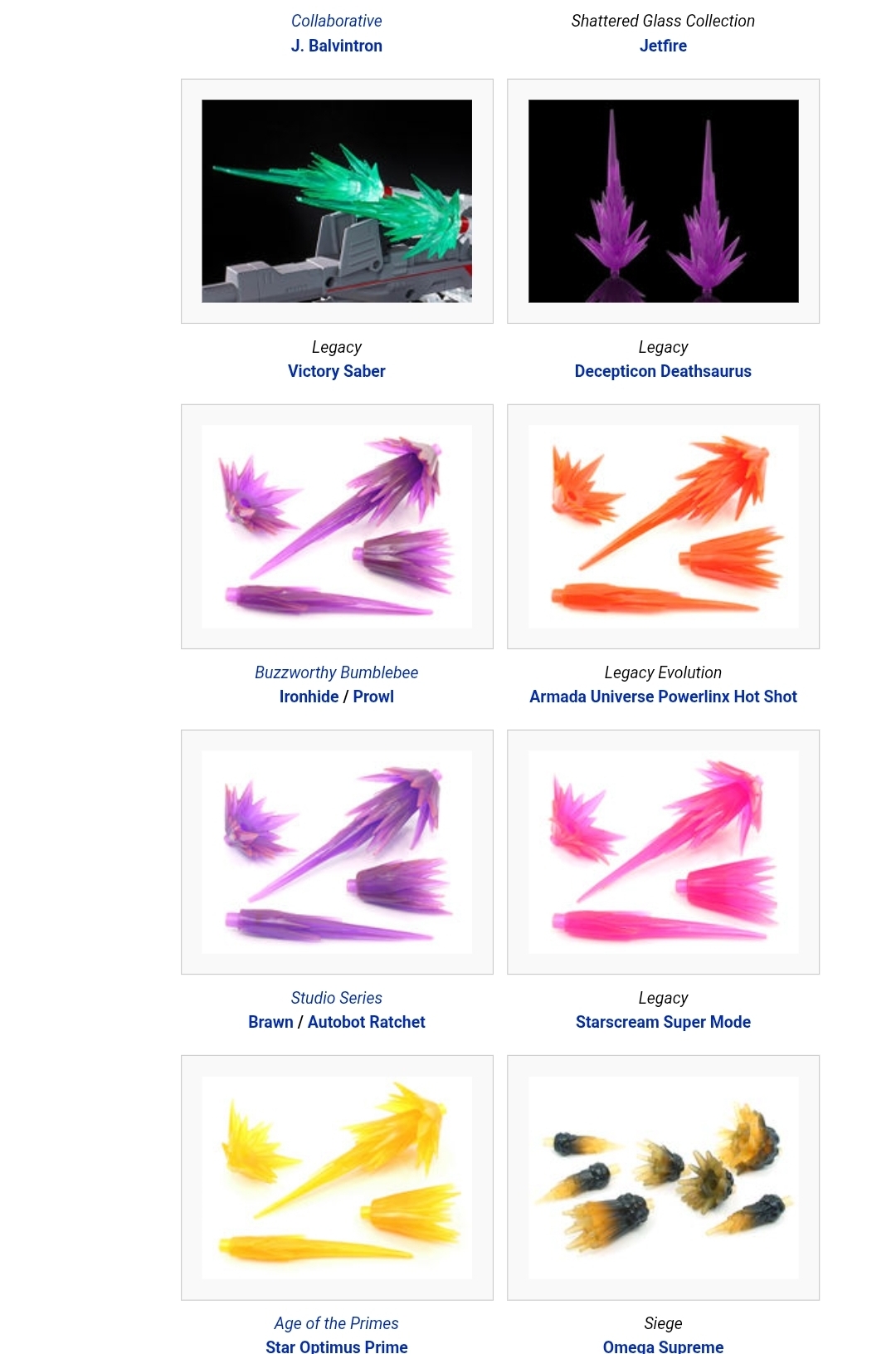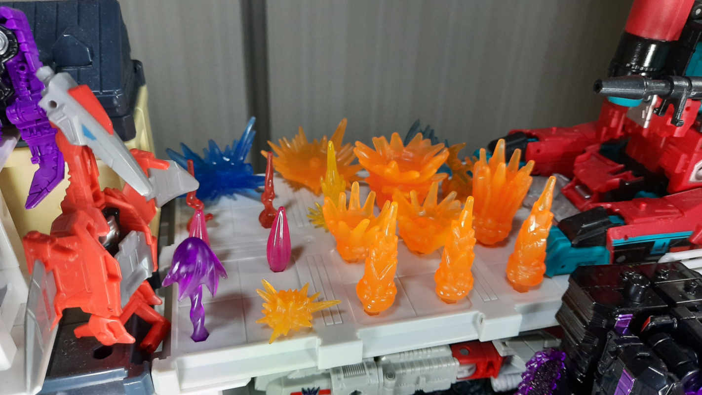 Does anyone know of blast effects similar to these (I am 99% sure these are Siege Jetfire's) but in a pink/purple more like Armada Starscream's? Preferably some that don't nuke the plastic if possible but I don't know how much of that is just fearmongering.