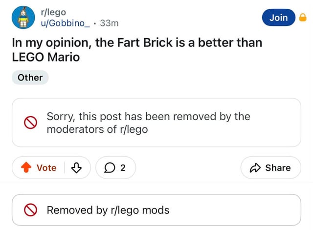 >>11670304Media companies can choose to manually enforce it but a lot of the process is automated. Again I completely acknowledge that this is cope on my behalf. I just find it impossibly stupid for Lego to have fucked up this bad.