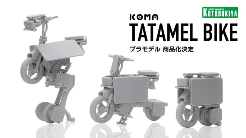 I don’t know if anyone else cares about this, but I just found out Kotobukiya is making an official kit of the Icoma Tatamel bike and I’m extremely hyped. I’ve been tempted to buy one of the blind box kits from SO-TA, but now I’ll wait since Koto’s will be higher quality. They even added a third mode that doesn’t exist on the real bike, some kind of robo-chocobo.