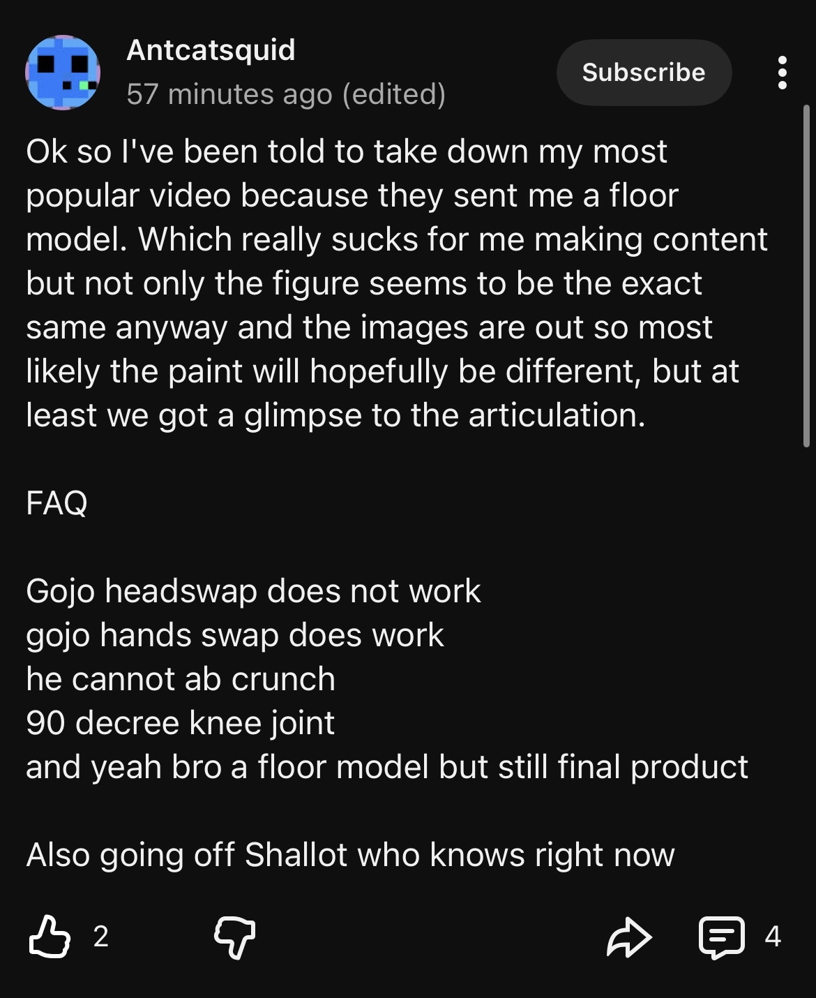 >>11677203This and shallot really killed it for me. I'll also cancel everything. I'm not paying to betatest especially for these prices. 100 $ each figure and then we get this garbage??? Fucking disgraceful. They should lose their distrubution license in the US for this shit.