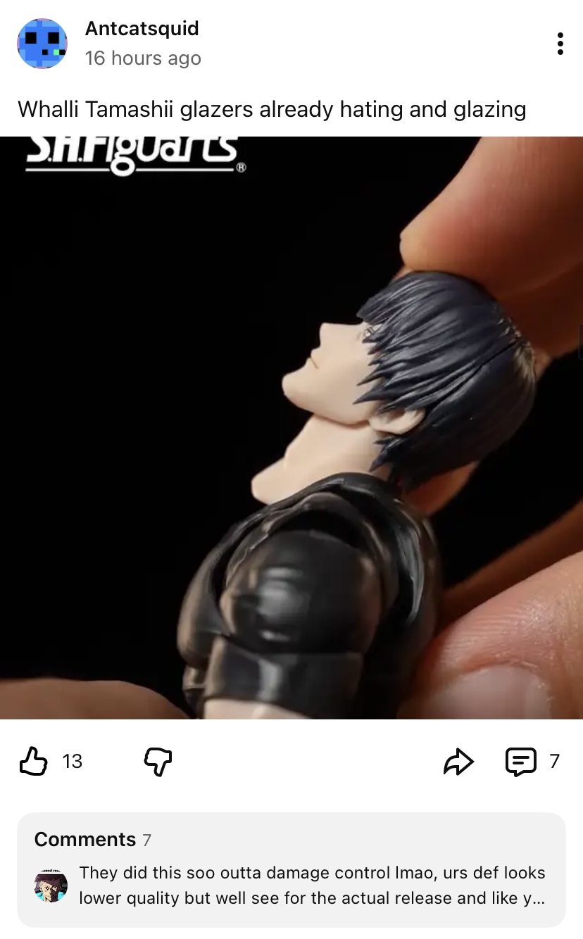 >>11678800If the solution is “quit and don’t talk about it,” then the only voices left are the ones pretending there’s no problem. That benefits Tamashii, not the hobby.