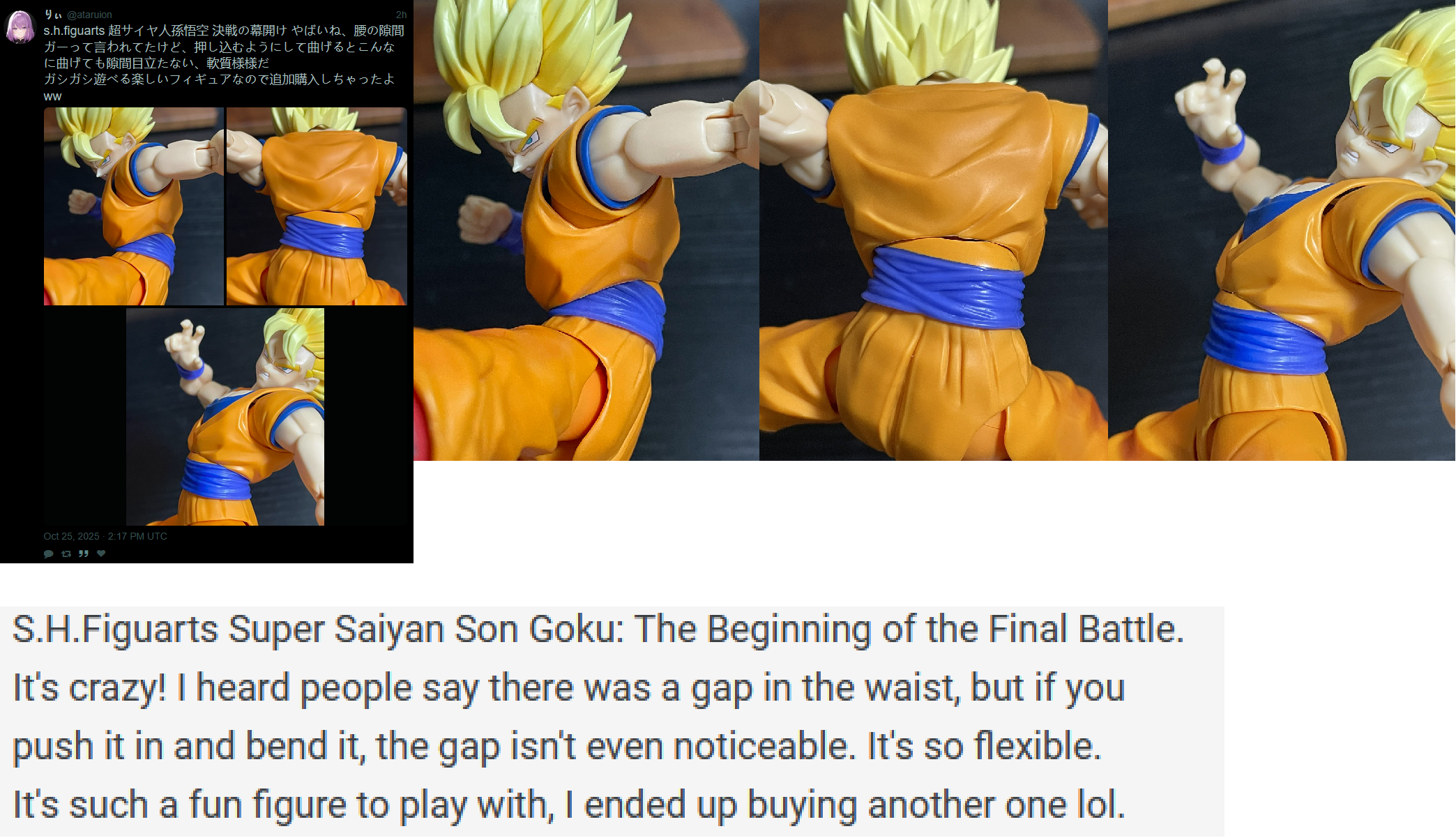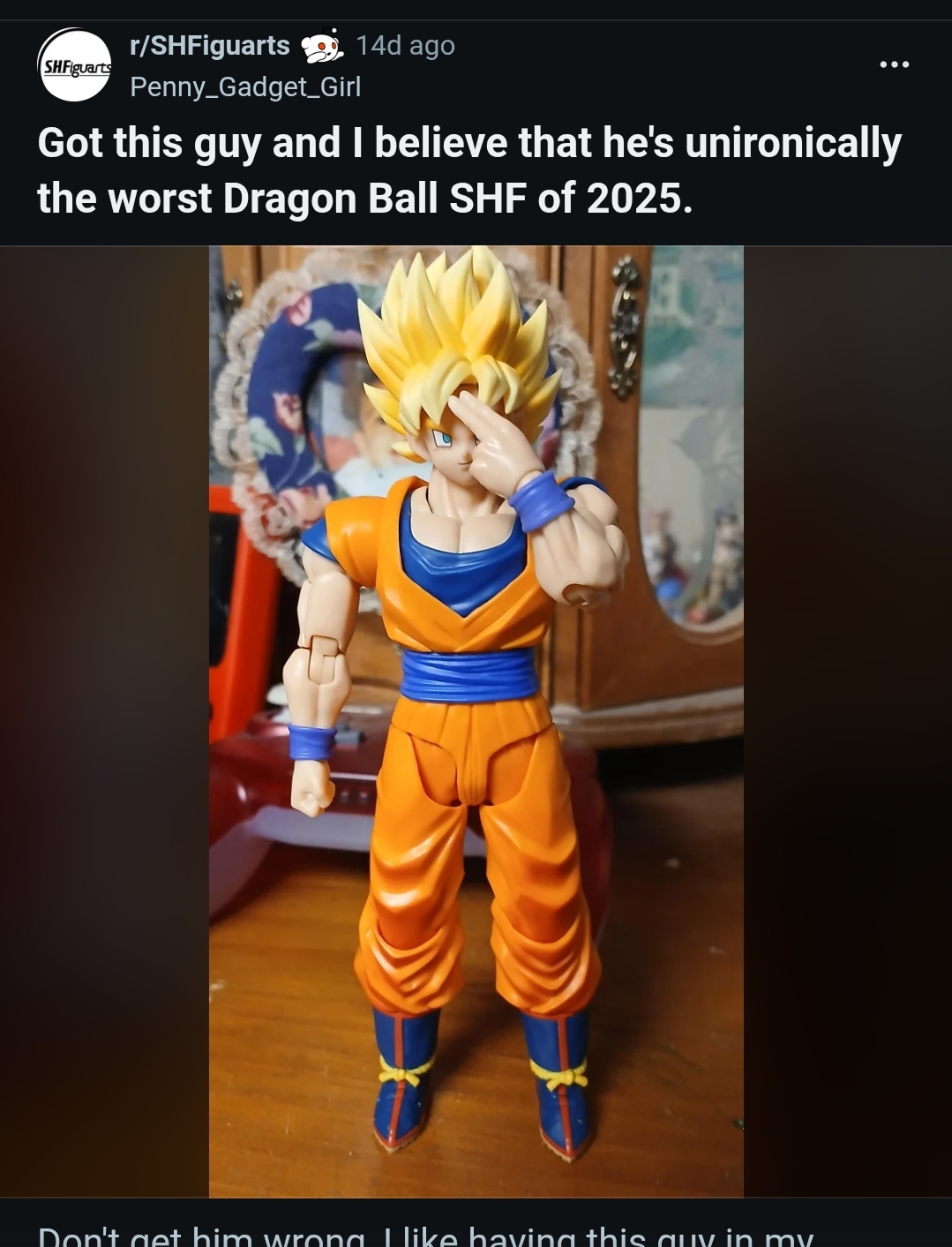 He feels so poorly designed and handled despite being hyped up as a turning point for the SHF Dragon Ball line.Like why is there only shading on the front but none in the back? It makes the figure looks like a unfinished prototype you would see during special events.Why is there so many QC issues to the point it's now a gamble if your Games Begins Goku is (almost) flawless or outright unusable when he's meant to be the biggest release of the year? Thankfully my copy only suffers from the right leg being a bit wobbly(He can still perfectly stand on his own) and his arm band has a different shade of blue when compared to the other.Why is he so over-engineered? Like I understand they wanted to show off "new technology" with this Goku, but most people don't want to customize his sleeves or deal with absurd gaps when bending his upper body or feet. A simple 3.0 body with the engineering from Daima Adult Goku or Super Hero Gohan would have been perfectly fine.All of these issues really makes me want to check out Demonical's Fit SSJ Martialist Forever now, as I've heard it doesn't have any QC and even has a base Goku head with a halo accessory.Otherwise, it's a shame that Bandai fumbled so hard on this.