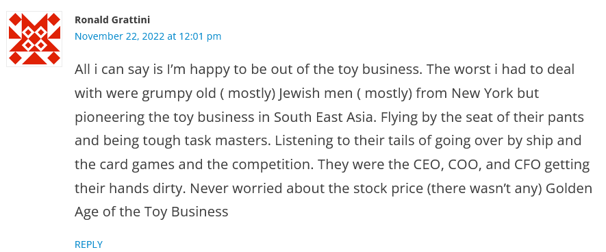 >>11682713The previous CEO of Hasbro, Alan Hassenfeld, was jewish too and he was a grandson of the founder. Is the current CEO Chris Cock jewish also, I can't dig up much about him other than he was leading the MTG division before taking office. The toy industry in particular is a jew magnet it seems.