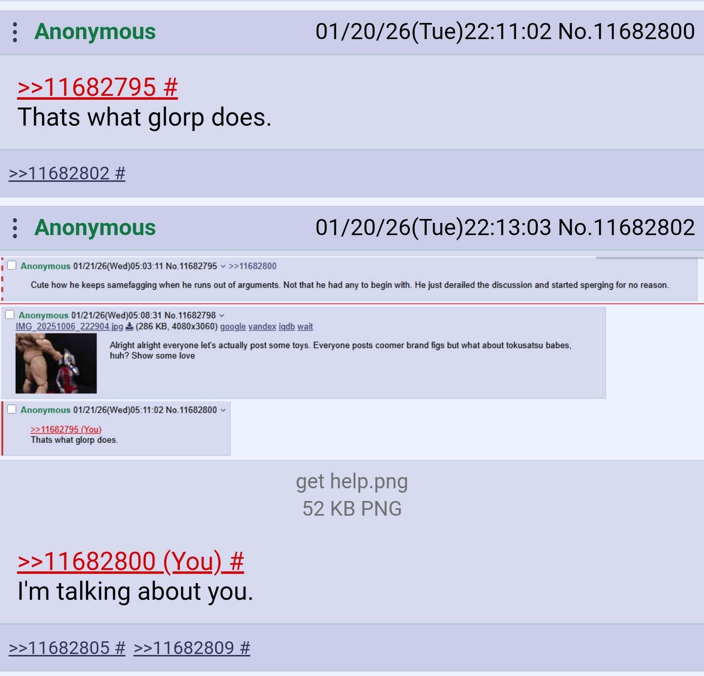 >>11682802The fuck are you screenshotting me for?