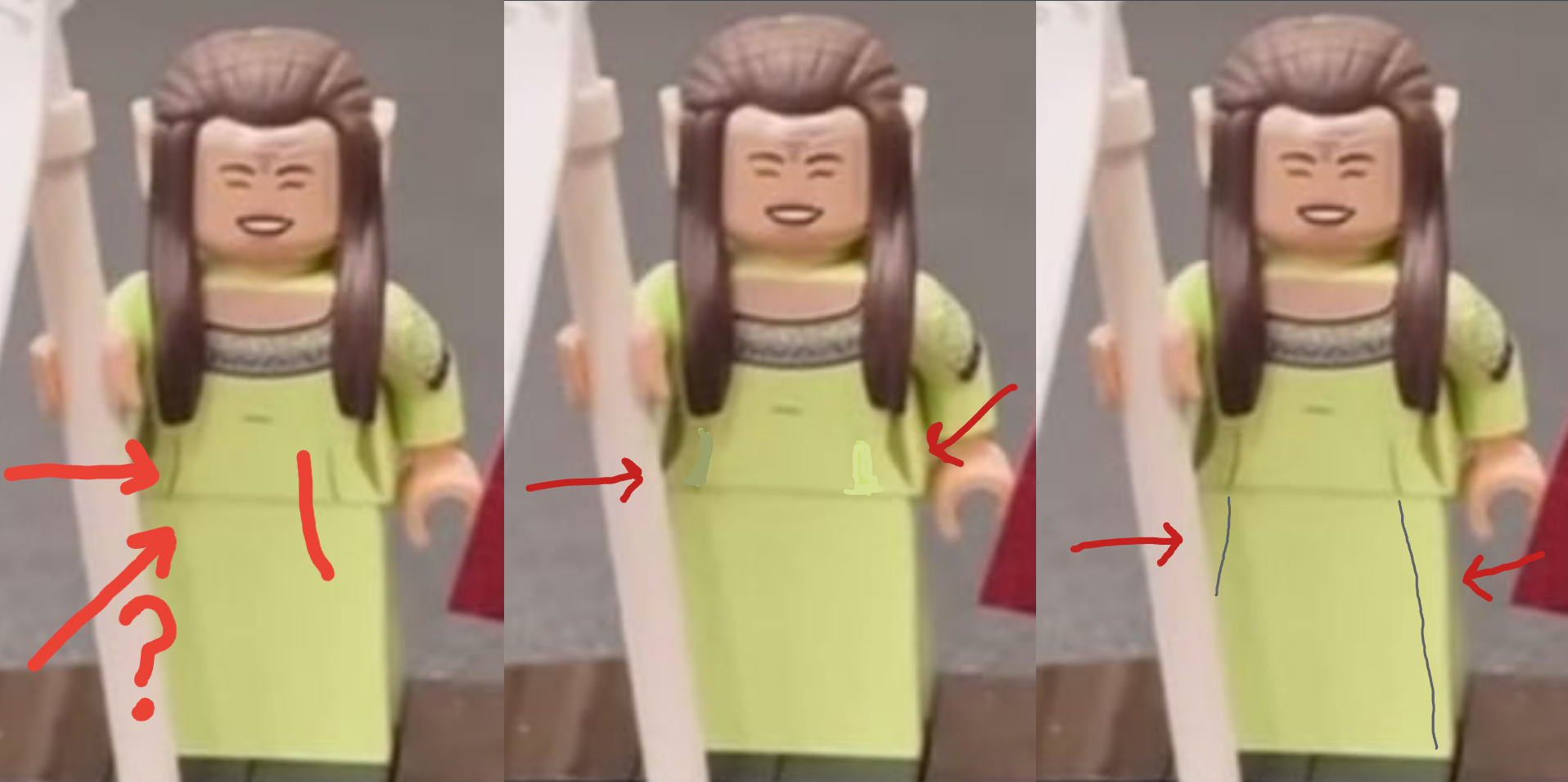 >>11688054(500 hours in my editing program)aaargh sometimes Lego designers can be maddening.they put lines on the torso that are not carried over onto the dress. the easy fix would be to remove those lines, or spend the pennies to print the lines down onto the dress.you're paying $500 for this set. argh.designer: "oh, b-but then you can use the plain lime dress bottom for your MOC figures!"nobody is buying a $500 set for that one lime dress piece. that sort of consideration is perfectly fine (and appreciated) in a $20 set. maybe even that $70 set. but for $500?? print the dang lines on the dress piece. why are you going to make a $500 and not make sure every part of it (pun) is perfect? you know how much five hundred dollars is, right??