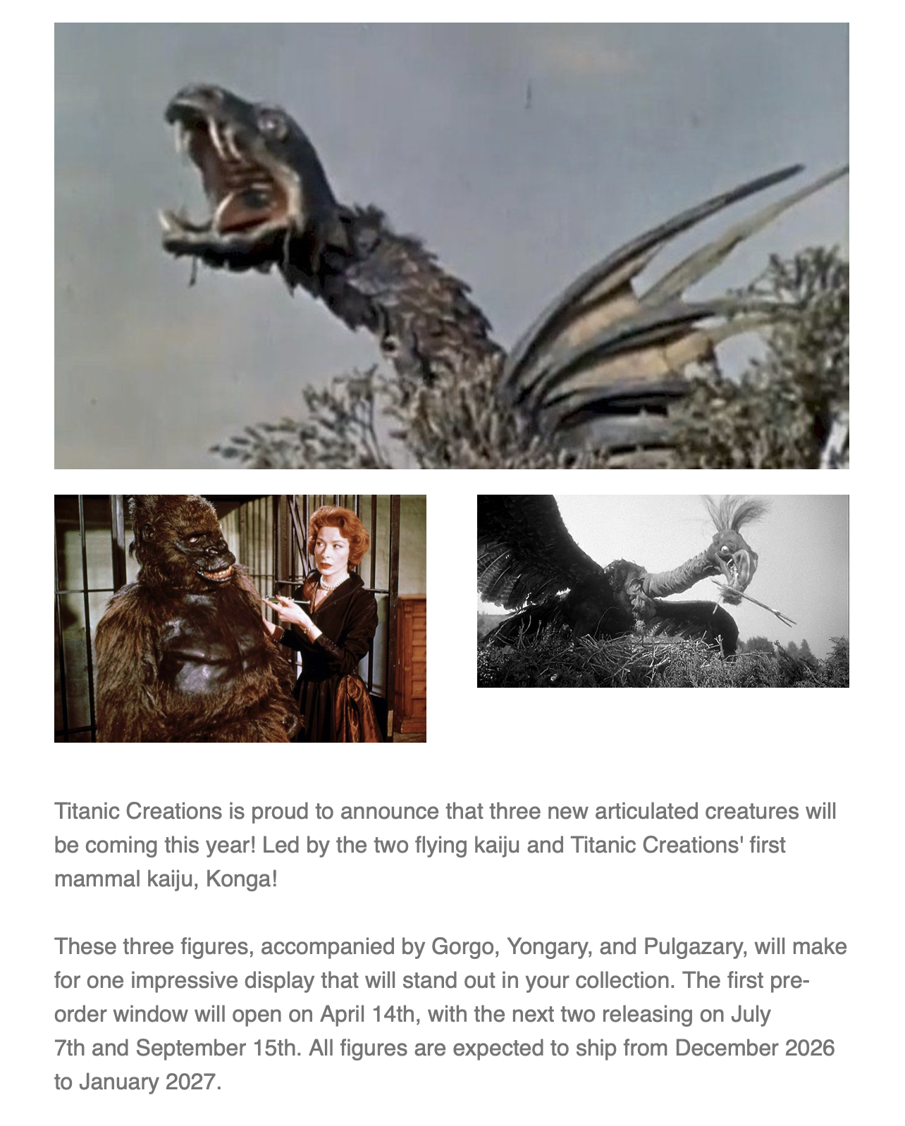 Titanic Creations announces three new releases for this year, Reptilicus, Konga, and The Giant Claw!Previous thread >>11659535