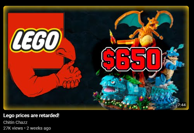 >>11699931The number of people I‘ve seen online who seemingly have no clue how a contest works is depressing.... They just read the headline „LEGO Yu-Gi-Oh“ and comment nonsense like „hurr durr, $600 Blue Eyes White Dragon, no minifigs“.I know A LOT of people only read headlines and draw all their conclusions from that alone, but come on, this is ridiculous! A minifig series might be in the cards (pun wholeheartedly intended), but there has been exactly ONE contest like this before, which is not enough to establish a pattern
