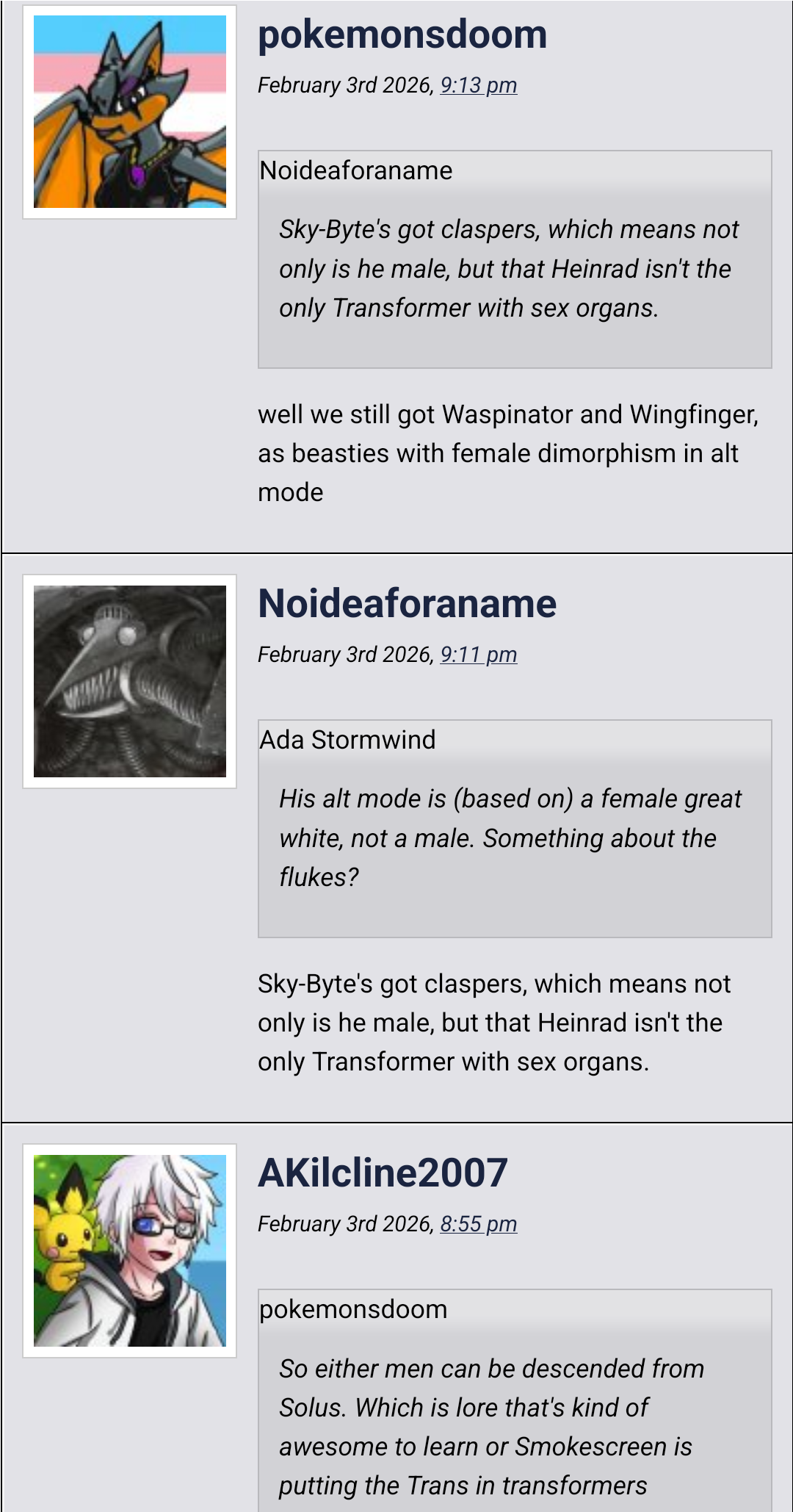 >>11699611Anti-Bayversefags/Redditors really are acting no different than quintesson judges right now. Nobody is ever innocent, only guilty every time.