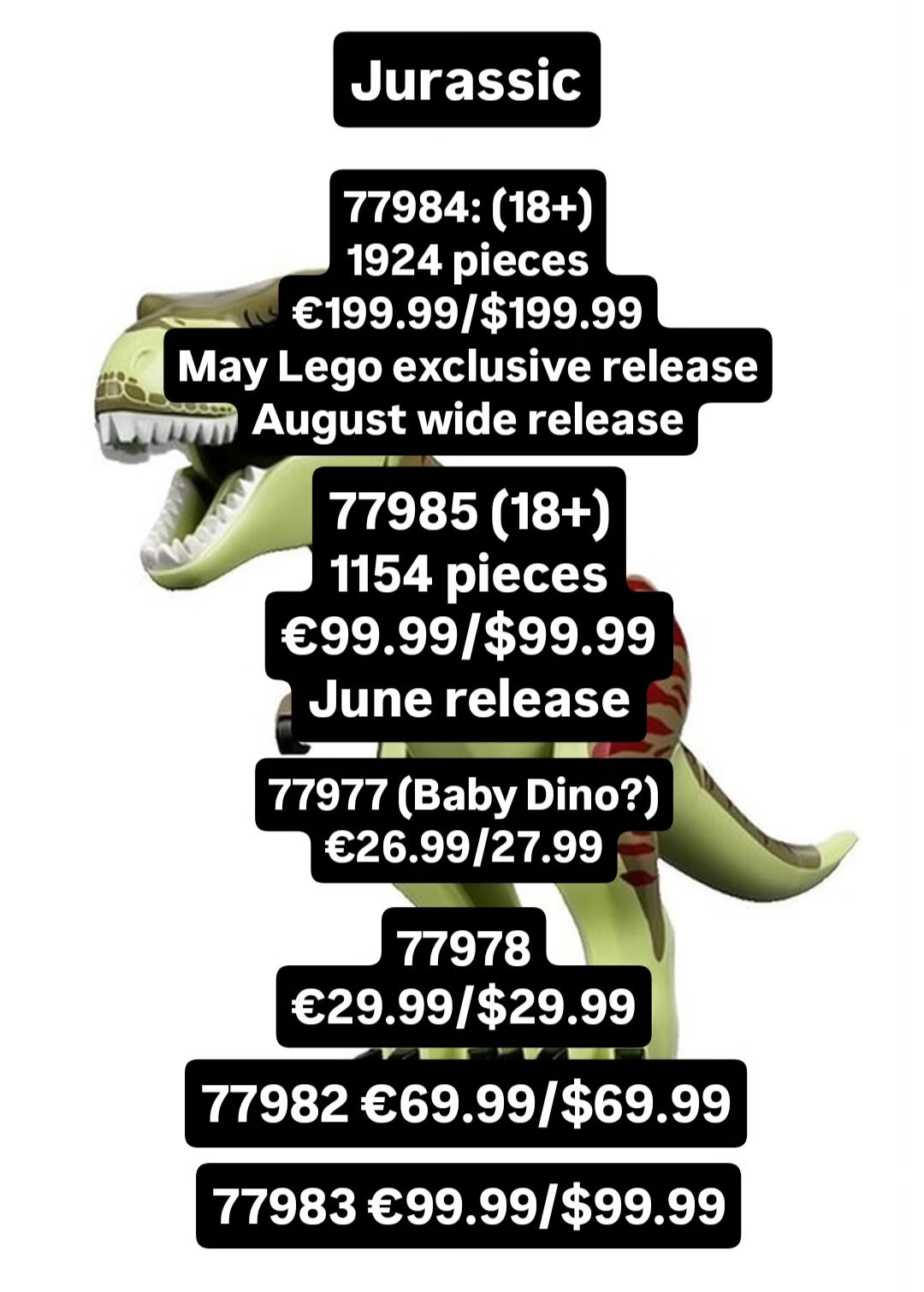 New Jurassic sets are coming in June. We’ve received confirmation that the full summer set lists are not finalized, so themes like Sonic, Animal Crossing, and others could have more sets than have been announced so far and I know there are a few fans of those themes here who were curious about that