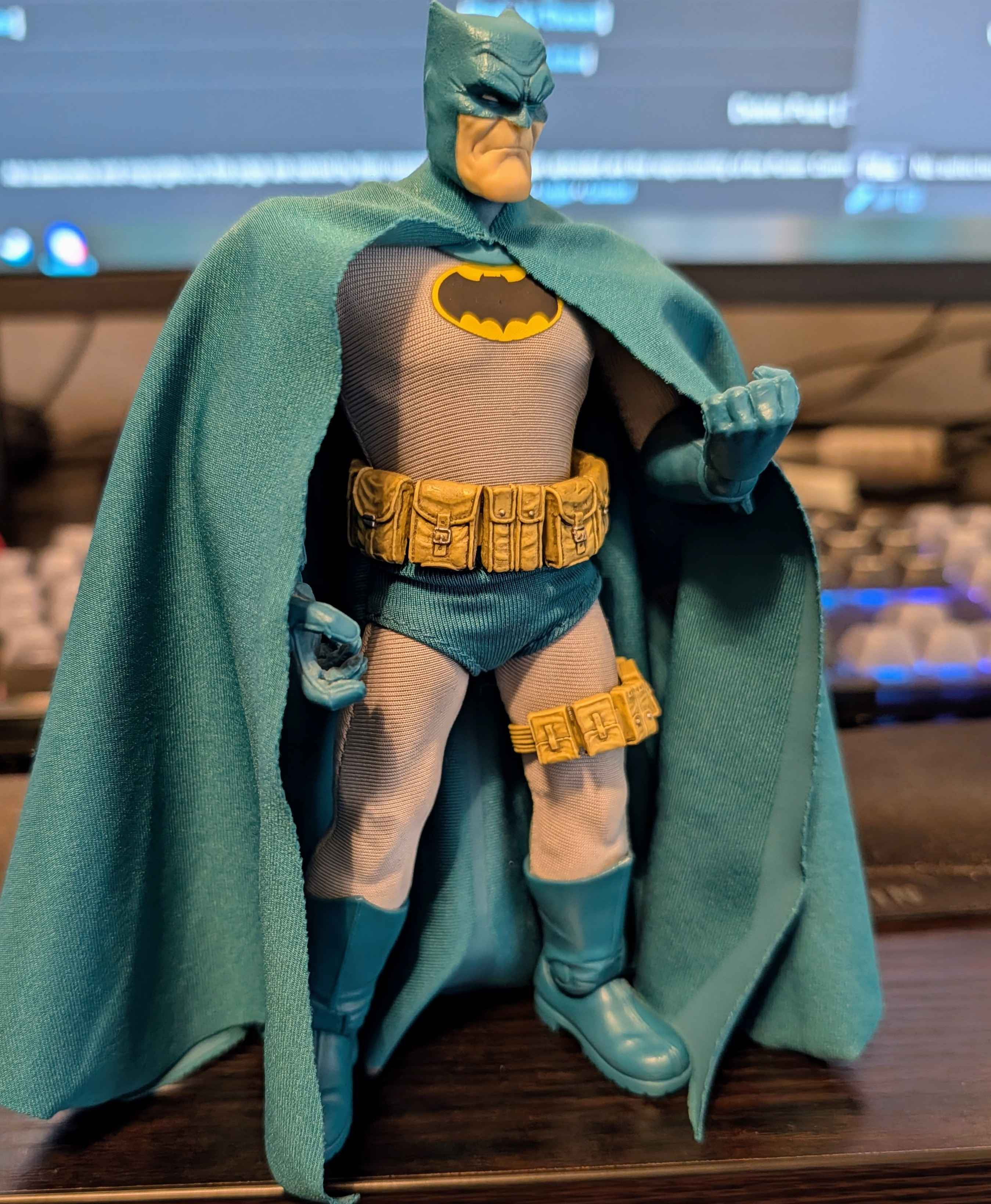 Opened Bats yesterday and I like him so much more than the black and yellow 3-Jokers Batman. Way easier to pose due to the fabric cape and the proportions are a thousand times better, plus the head is almost perfect. Surprised about the symbol not looking too big in person. And the entire costume is actually black instead of having dark purple parts like the 3-Jokers BatsWill say that I wish the cape were wired but there's always something with Todd