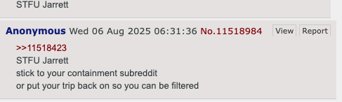 >>11704323Same person Anon found out he’s real name If you look all the way back to the first time Jarret is ever mentioned his only response was “how?” To be called by his real name