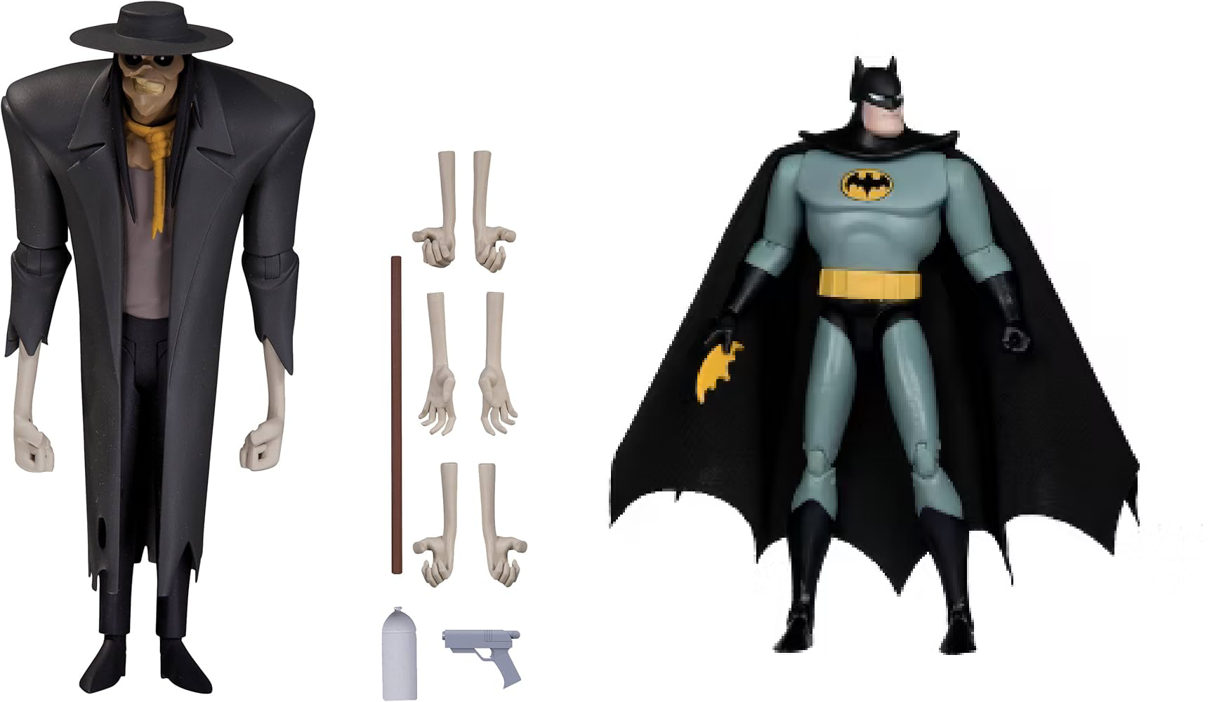 >>11707471They've done a handful of different variants.There's a standard TNBA version from the 1st wave. Later on they did a standard BTAS version. They reissued that one with a ton of accessories in "Batman Expressions." Then they recolored the TNBA one in black without the cape from some episode. Then they did a BTAS one with a cloth cape that I think came with the Bat Signal so it could sit in the Batmobile. Then they did _another_ with extra articulation in the hips so it could ride the Batcycle. There's another that's supposed to be a HARDAC clone that uses the new hips but has robot parts visible. Then there was one in a premium priced Justice League wave (see >>11707491) that you had to be a subscriber to HBO Max to even order. Then McFarlane reissued a few of them - TNBA and HARDAC for sure but possibly others (dunno because the cel-shading on the BTAS-themed reissues is hideous so I stopped watching that line).
