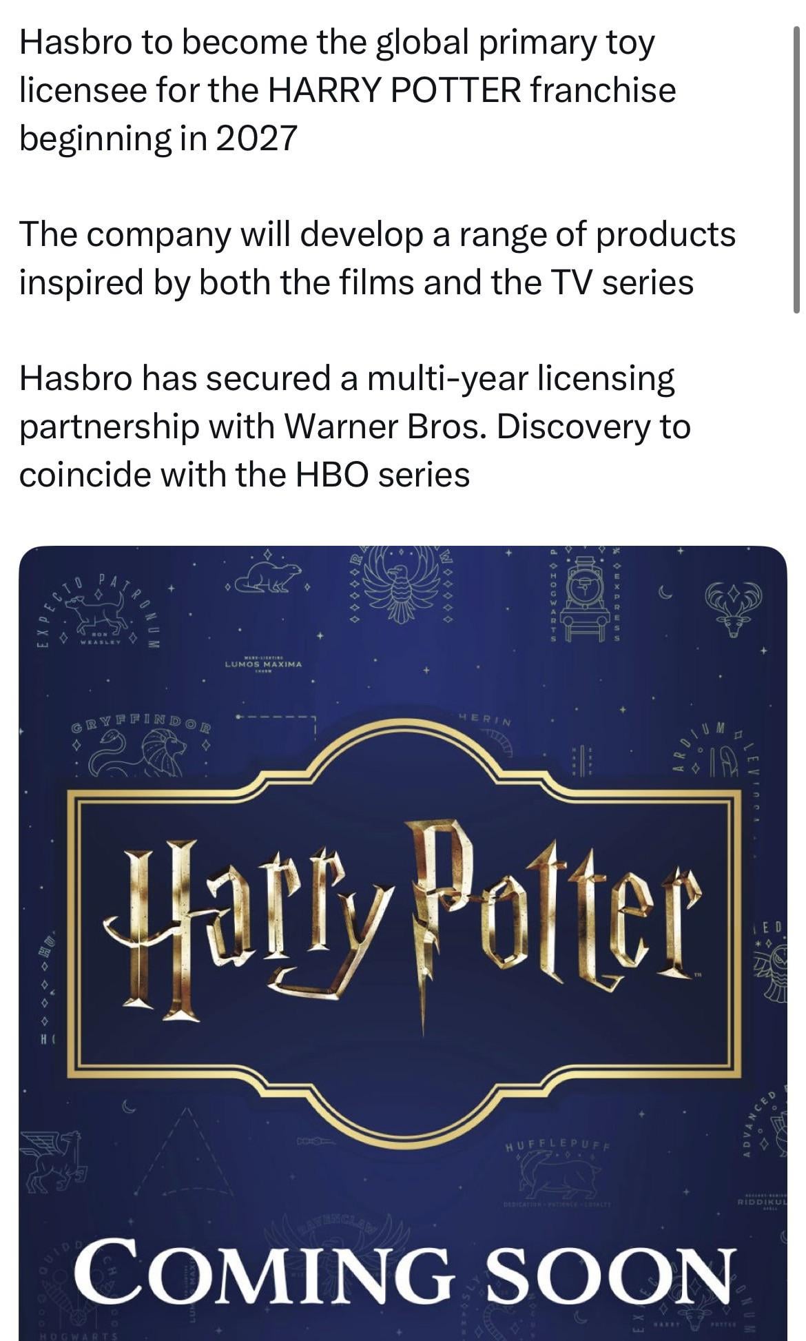 Two things:1.Every action figure line made of Harry Potter since 2001 has flopped. Mattel, NECA, McFarlane. Everybody's tried and they've never gotten past the mains. You're never gonna get any of the cool secondary and tertiary characters like Luna, Neville, The Weasley Twins, Bellatrix, Mad-Eye Moody.It's gonna be fuckin' Harry, Harry, Snape, Harry, Dumbledoor, Harry and Voldemort. They're gonna be overpriced, soft sculpts, and mid paint apps. And I garuntee you they're gonna hike up the price with am unnecessary BAF.2. They're probably thinking they're gonna make money on playable toys like wands, brooms and that kind of thing. They might, but the problem is that all the hardcore HP fans can already buy those expensive replica wands and props already and so they're really hoping that the kids will buy them. Are kids still in to HP? Does anybody care about it since the last Fantastic Beasts movie?