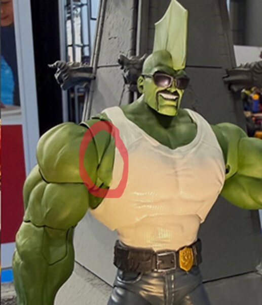 >>11719550His arms won't go inwardly but there's some extra room laterally, so it isn't like there's no point. Also don't forget that Larsen had a bit part in this figure's approvals, it's entirely possible that he wanted more meat there for a more full pec to better match his art.
