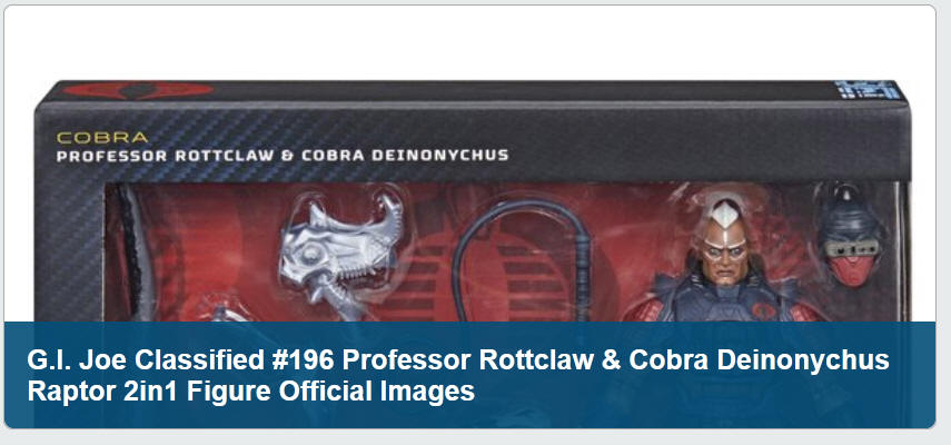 >>11713478Gen X’er here. And I’m fine with it as long as it’s detailed and looks cool.You kids must realize Cobra-La and dna melting pot Serpentor, are more farfetched than cloning dinosaurs, right?Dino Hunters was already part of G.I.Joe anyway.And it’s not like they’ve given up on the military aspects. Look at Action Soldier Special Forces
