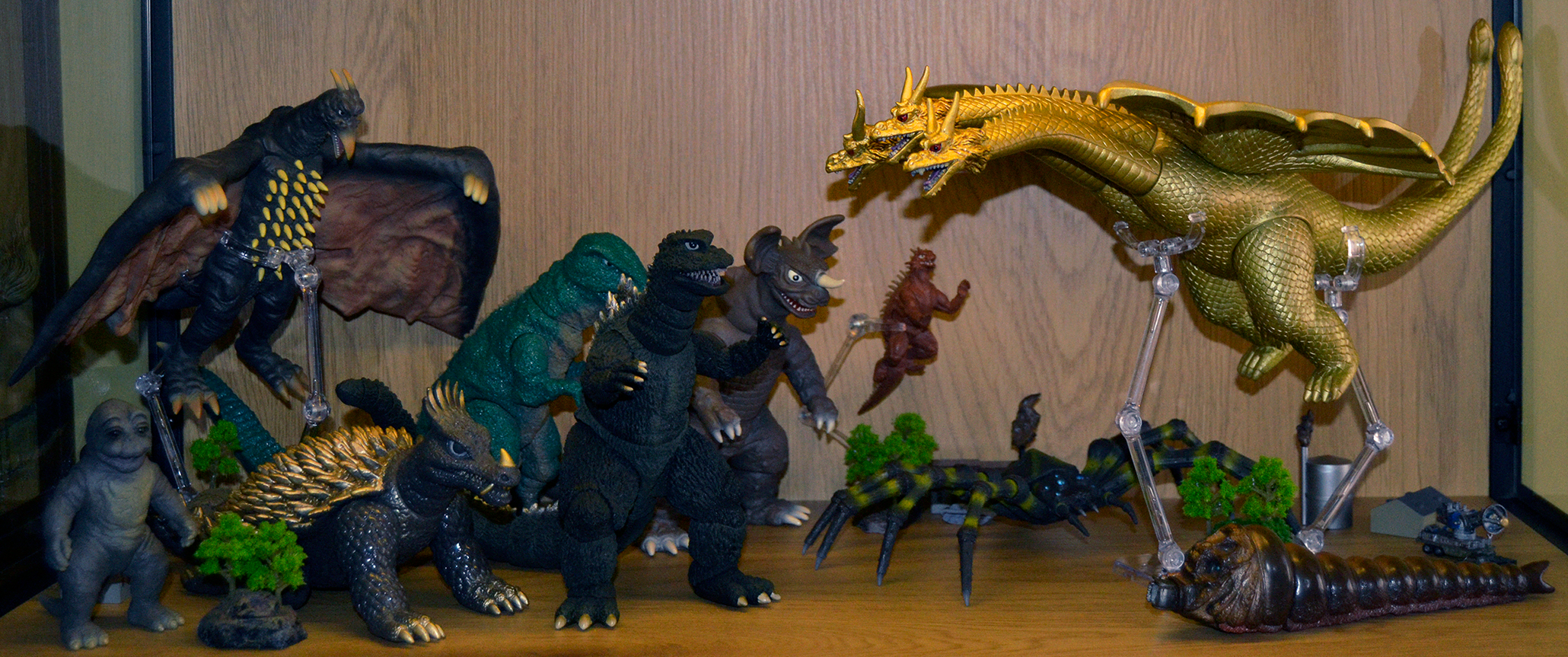 >>11725148Very nice collection there. I see some good YMSF figures throughout.What is that giant King Ghidorah on the upper left?