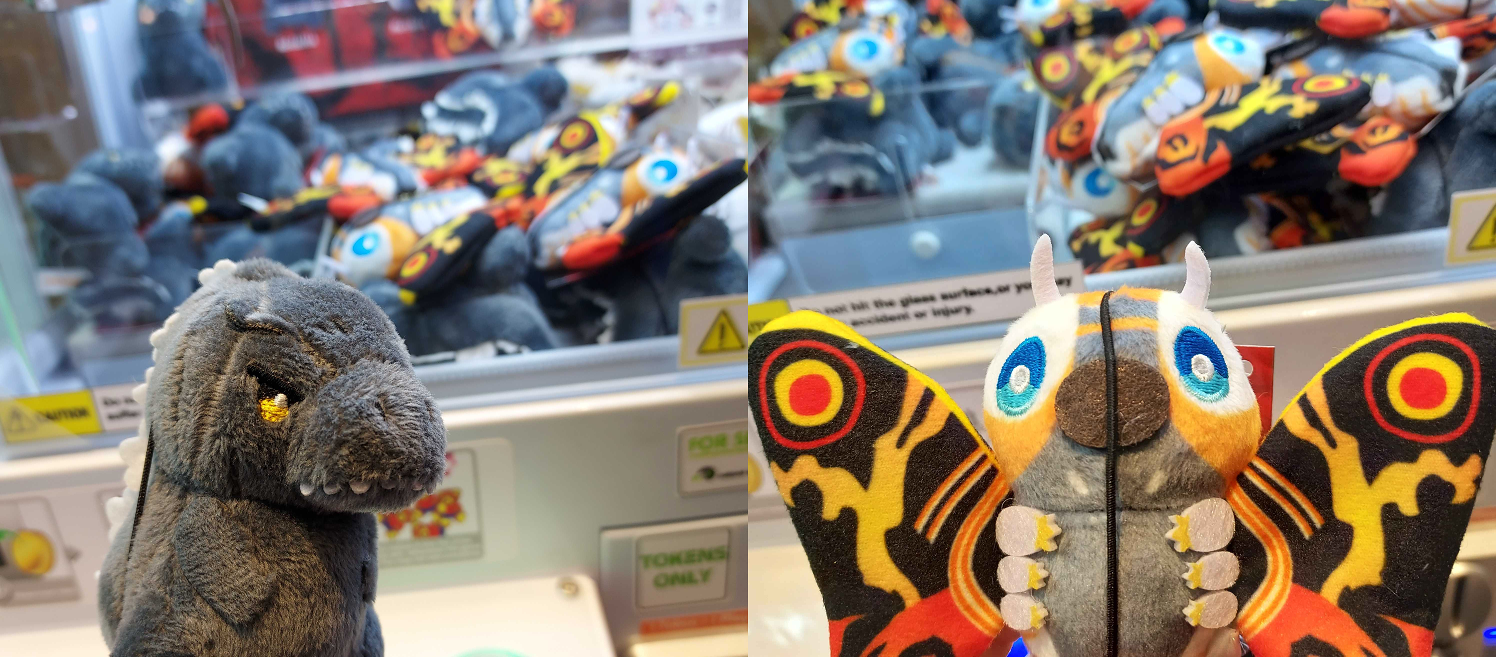 Won these little Godzilla and Mothra plushes from a claw machine. They now hand proudly in my car.