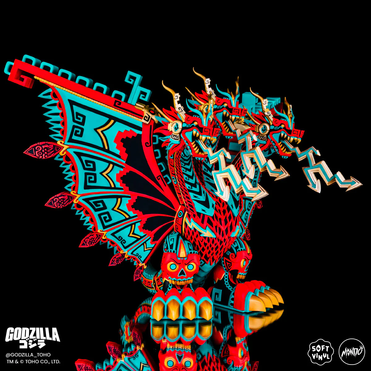 Regarding the knife in the tail, knives were obviously associated with death, harm, or war, so again that fits with Ghidorah though Godzilla also had some in his Vinyl. You'll notice there's also knives lining Aztec Ghidroah's wings which was another trait of Itzpapalotl's, with her name litterally meaning obsidian/flint butterfly, and more broadly the feathers of predatory birds are sometimes drawn like flint knives.