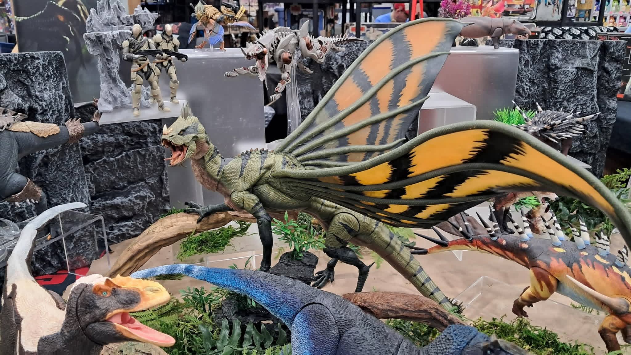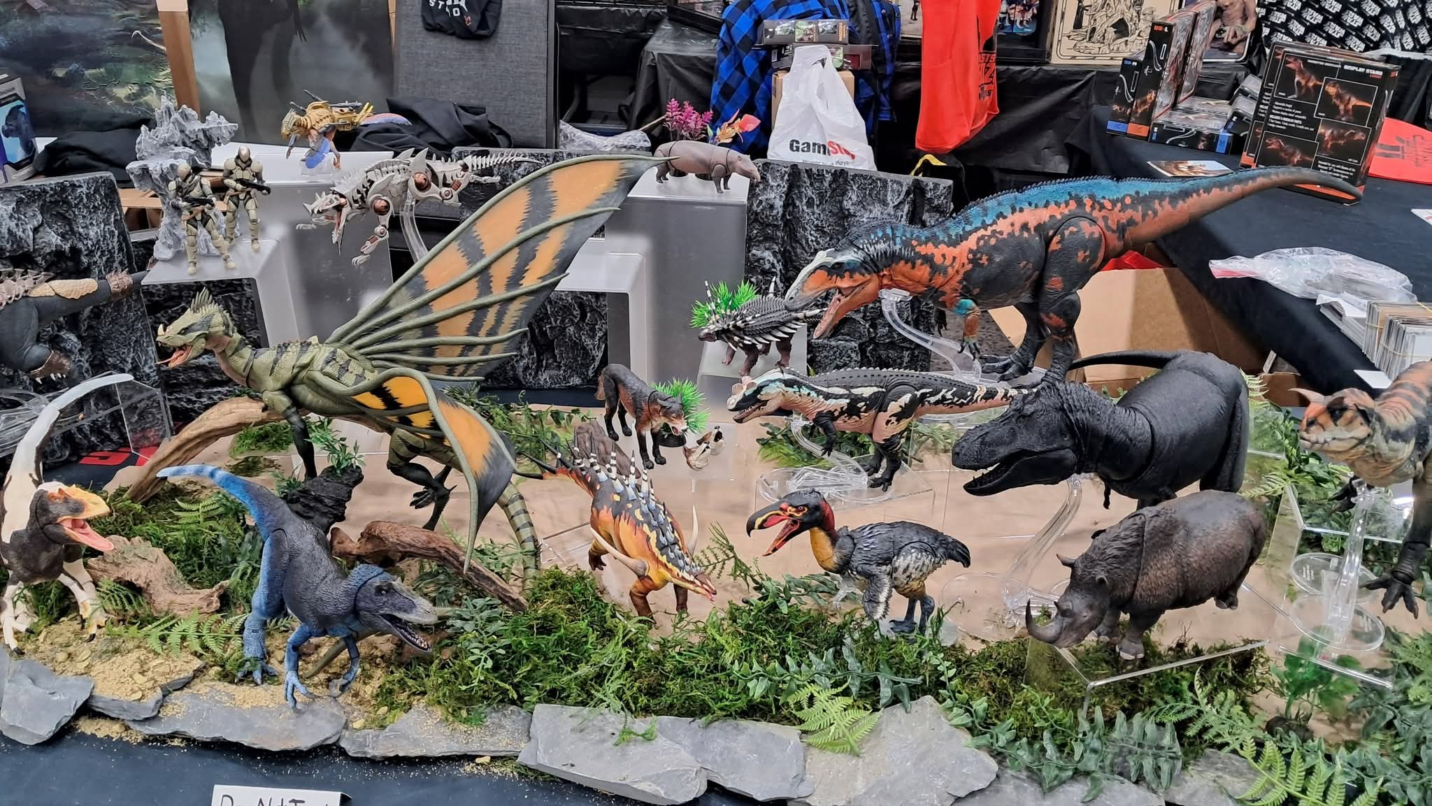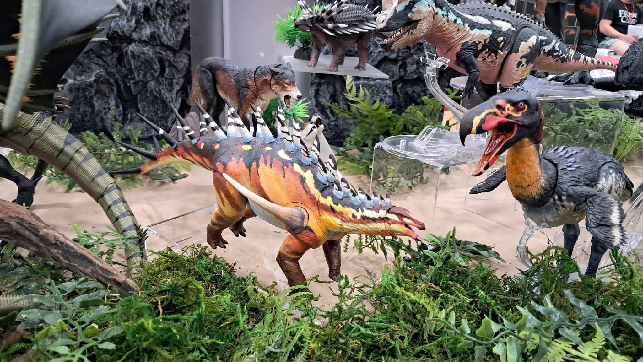 >>11748990The first wave of the Cyberzoic Dilo came out, but the factory accidentally under produced them so CB had to order a whole second wave to fufill the unfufilled orders. They should be shipping with this current wave>>11749778I dont collect 1/12 figures that arent robots or anime girls, so you'll have to forgive my limited points of reference, but here are some 1/35, 1/18, and 1/12 dinosaur figures. Nanmu does their large dinosaurs in 1/35 and their raptors in 1/12, the allosaurus you asked about here >>11750037 is one of their 1/35 scale figures and it is about the same size as the Carnotaurus behind HK416 (the blue haired girl with the gun). Most BotM figures like the achillobator, green allosaurus, Pachyrhinosaurus being ridden by the pink bunny girl, and the stegosaurus are 1/18 scale, but the blue, white, and red feathered velociraptor is 1/6 scale. The Nanmu JP Velociraptor by the nun is 1/12 scale. The Nanmu Indominus and Tyrannosaurus next to the Star Wars Black series robot and the succubus are 1/35 scale and could probably be used as mounts for most 1/12 human figures. The Hammond Collection like the Spinosaurus in the back is also 1/18 like BOTM, and while they are super cheap if you can get them in store they skyrocket in value on thw aftermarket because Mattel does not care about even distribution.