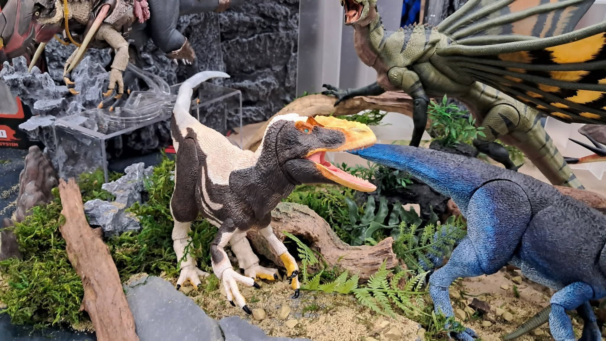 >>11747674>Would those two be a good introduction to the Beasts of the Mesozoic line in particular and more expansive toys in general? The Dilo absolutely. It's a great figure. The Velociraptor... eh. That Velociraptor was my first BotM figure it was "fine" for the time, but the paint work is an order of magnitude worse than the Dilo. >How is their QC? I've seen no real issues with the Dilo though there are people who complain about it not being able to stand as well without a support stand because of its long body. The Raptor has a fair amount of paint issues.>Can they pose well without the stands at all? The Dilo can be a little finicky when it comes to standing on its own because of its long body and weird proportions, but it can be done. The Velociraptor cannot stand at all without its support stand. >Do they scale well with Hammonds Stegosaurus and with each other? the Dilo is 1/18 like the Hammond Stegosaurus, but that Velociraptor is 1/6 scale so it won't scale with the steg. However, if you want a Raptor that does scale with the Stego there are the 1/18 raptors. Most are out of stock, but at least one of the color patterns is still available. https://creative-beast.com/product/1-18th-velociraptor-mongoliensis-black-4-action-figure/if you want a raptor that is about the same size as the 1/6 Velociraptor but does scale with the Stegosaurus, then I'd recommend either the Utahraptor or Achillobator which can stand on their own without a support.>Is there a quality difference with the different colored velociraptors? The one in that picture will almost certainly not look as good as the one you get. The paint work on the snout for that Velociraptor is very poorly implemented so there's none of that really nice blending of the blue>Is there another Dilophosaurus in the works?That's actually the second Dilo. It's a popular animal so it'll probably get a third eventually, but nothing has been confirmed