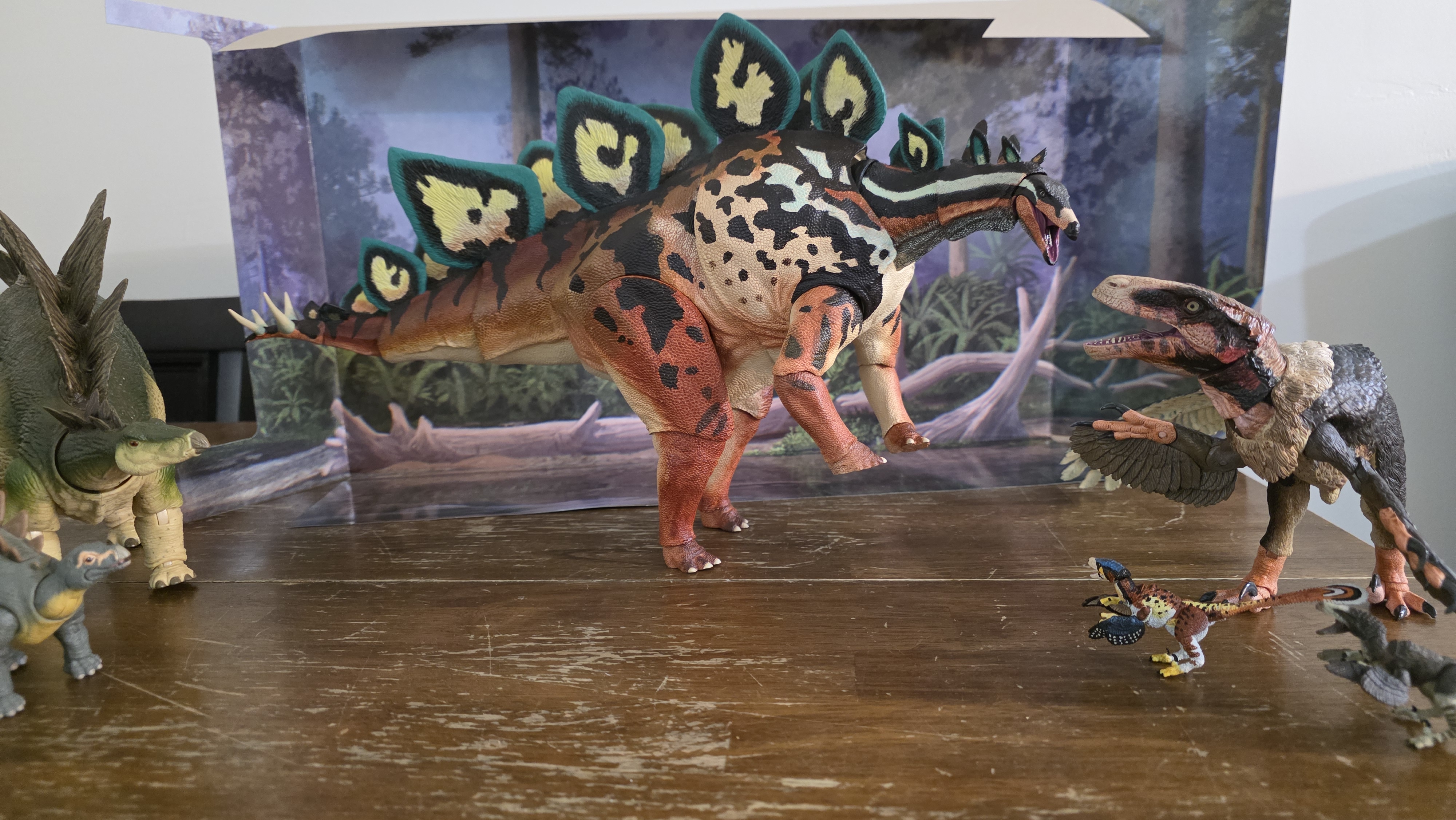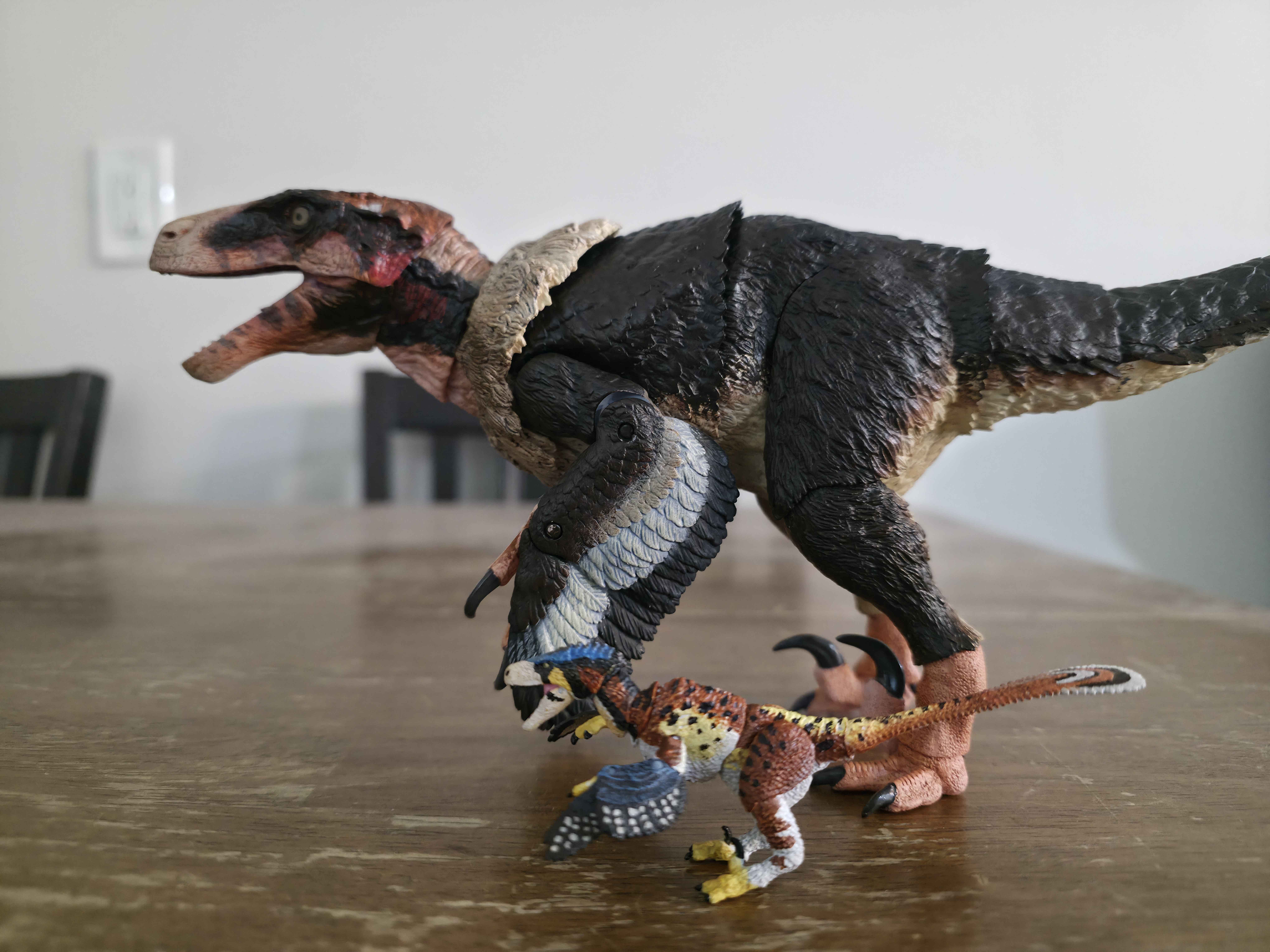 Stego arrived... still no andrewsarchus and 1:35 Allosaurus yet though. He's an absolute unit.>>11747734Np. Saw you deleted you post asking about the raptor in my previous pic. That wasnt one of the 1/6 scale raptor that was the 1/18 Achillobator. It has pins in its arm because the first run of the figure was pinless but had serious issues with the arms poping off and never going back on. So they switched to pins to fix the issue. I've brought out my 1/6 velociraptor. You can see how bad the paint on the snout is in mine compared to the art sample. Like I said if you want a raptor that is pretty sizeable and scales well with your HC Steg I would recommend either that Achillobator or the Utahraptor.
