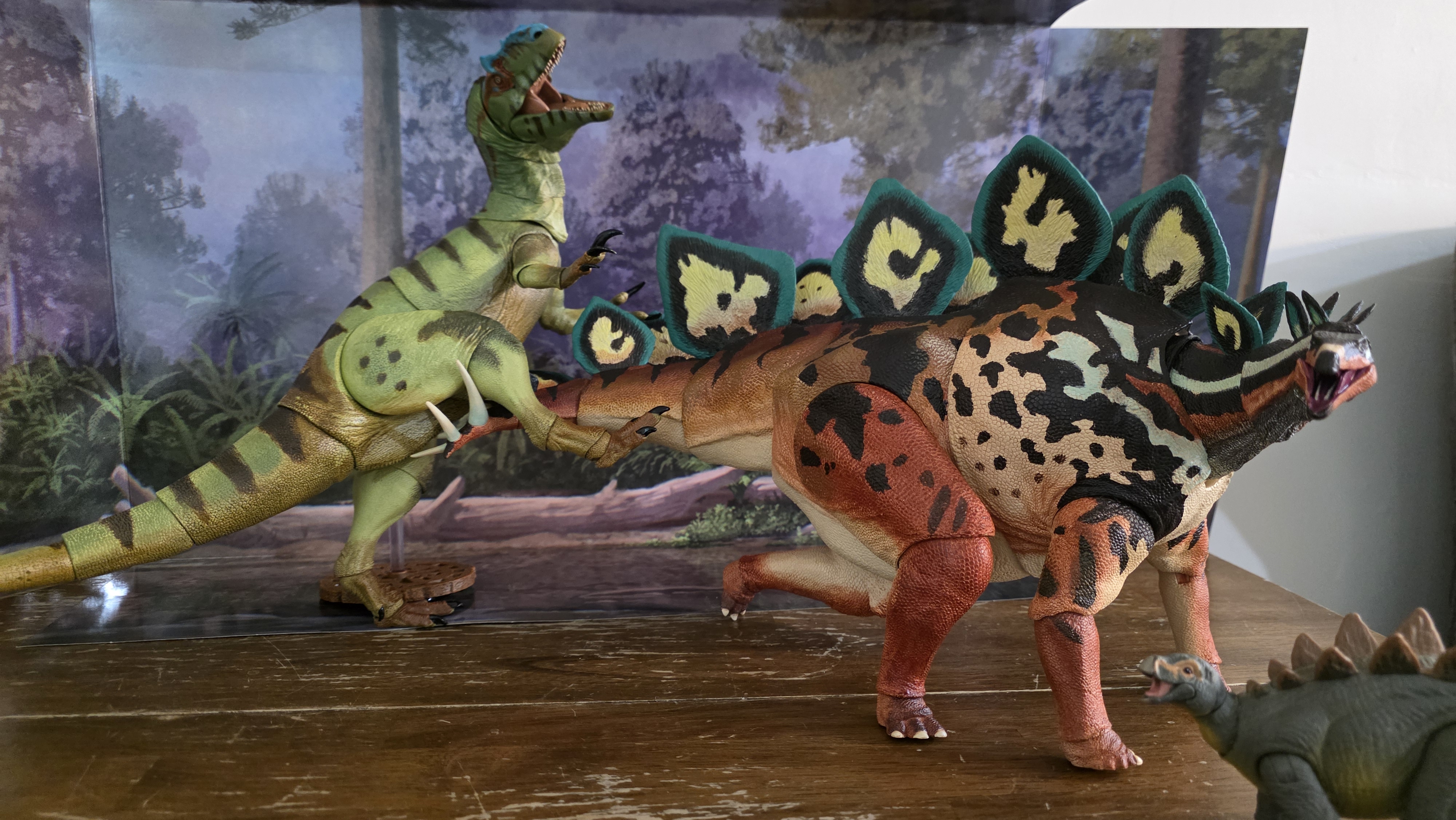 Got a few new BotM creatures todayHaven't messed around with them too much because I got home, opened them, and immediately crashed because work was soul-devouring, , but initial impressions: >GorgosaurusA lot more visually pleasing in person than in pictures. I was initially disappointed that I missed the boat on Alberto and Gorgo was the bronze medal, but visually, at least, it's a lot nicer than I was expecting. Standing pretty good so far, but the ankles are really fucking loose and I haven't even soaked it to loosen things up yet. Surprised it's even holding this pose. Honestly everything else was surprisingly loose (the good kind) out of the box too. Legs switched out easy, only really had to fight the tail to get on. >PachycephalosaurusVisually? Stunning. Like, goddamn, this is, design-wise, one of the best sculpts of theirs that I have so far. Very nice color scheme too. Got to soak him, and he feels like he's going to be really fun to pose. But these ankles. Goddamn, they are so weak. It's everything I was worried about with how loose Gorgo's ankles were. These ankles can barely hold it. Only other complaint is that they cut the bendy-wire in the tail off way too early so it has, like, 2 inches of flexible tail that can't hold a pose. >SmilodonThe one I've messed around with the least, so fewest opinions on it. Seems pretty stable, even on 3-legged poses. Another prime example of being completely unable to judge size before getting the figure for me. It was both bigger, and smaller than I expected, same situation as I had with the deinonychus. Probably going to do some posing over the weekend. These guys weren't even supposed to get here until tomorrow.