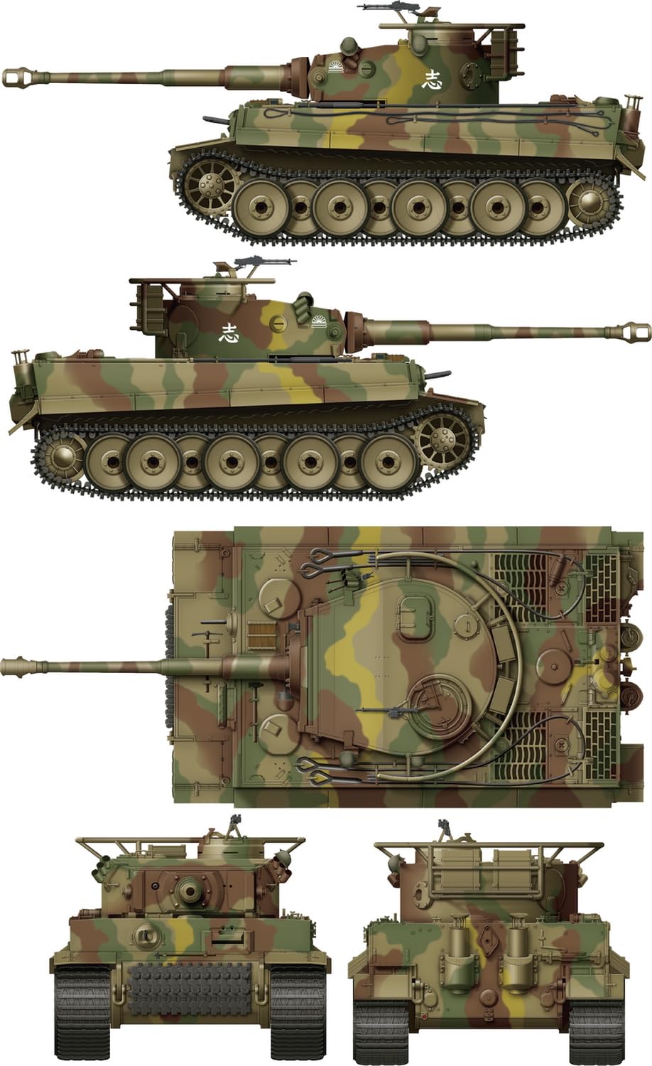 The late war set has the greenish khaki.