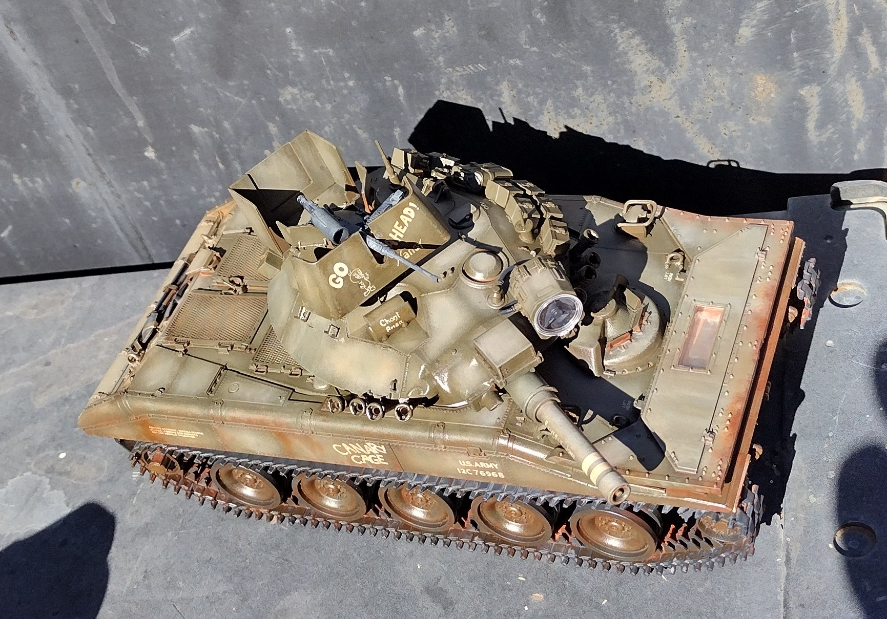The hull looks okay, but the grey tracks and rubber wheels don't look like anything they are supposed to.