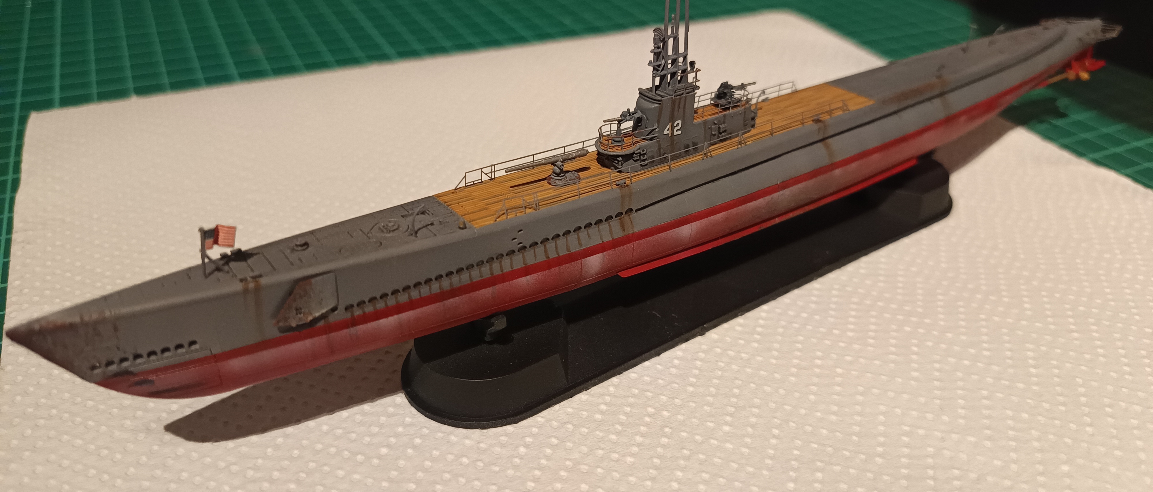 >>11728651calling gato done for now. maybe add rigging once it arrives. i do have to better plan out the weathering for these 1/350 ships. airbrushed salt stains are definitely overdone. just happy to have a build without major fuckups after the issues i had with the aircraft