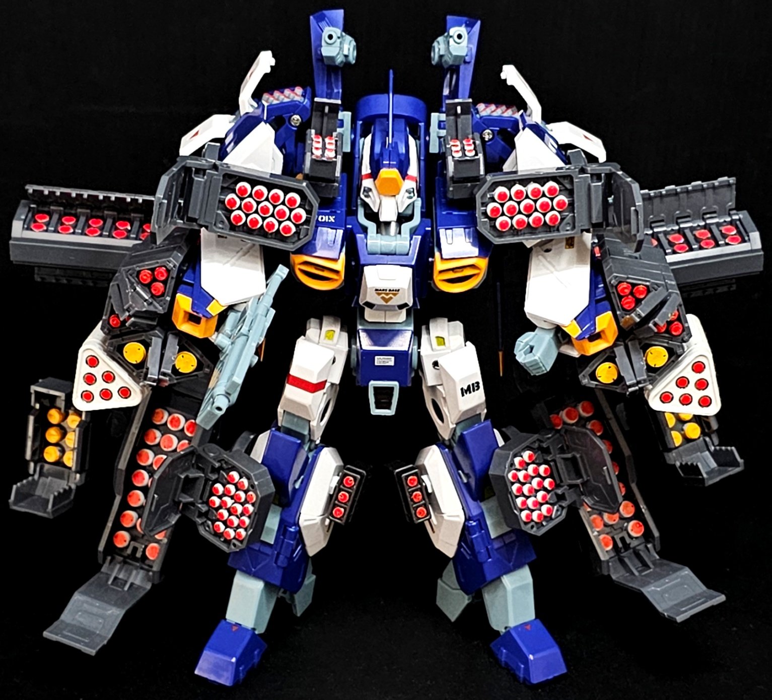 >Dia-Battles X-1 with drills, AMBAC arms and visorGee, thanks Takara Tomy.