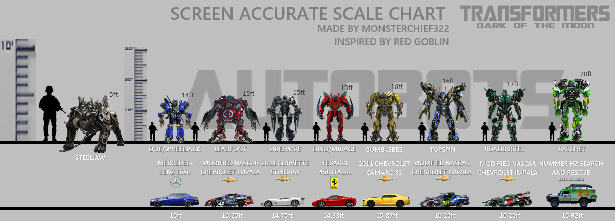 >>11756316All the original MPM cars scaled with each other perfectly and were the same size as Human Alliance, 1/30 or 1/32 I believe. The trucks, planes and copters were way too small and didn't scale with anything in either mode. This is why nearly every large MPM character got an oversize KO, using MPM Bumblebee as the reference. There's an OSKO Bumblebee and Barricade but those are meant to be non scale display pieces. Some DotM scale charts list Dino as 18ft and others at 15ft. UT likely based their original on the former, even though it doesn't make much sense considering Dino's car is very similar to Bumblebee. These Dino USKOs are all trying to fit him into that 15ft scale. UT Dino next to Hasbro MPM 4 must look completely ridiculous.