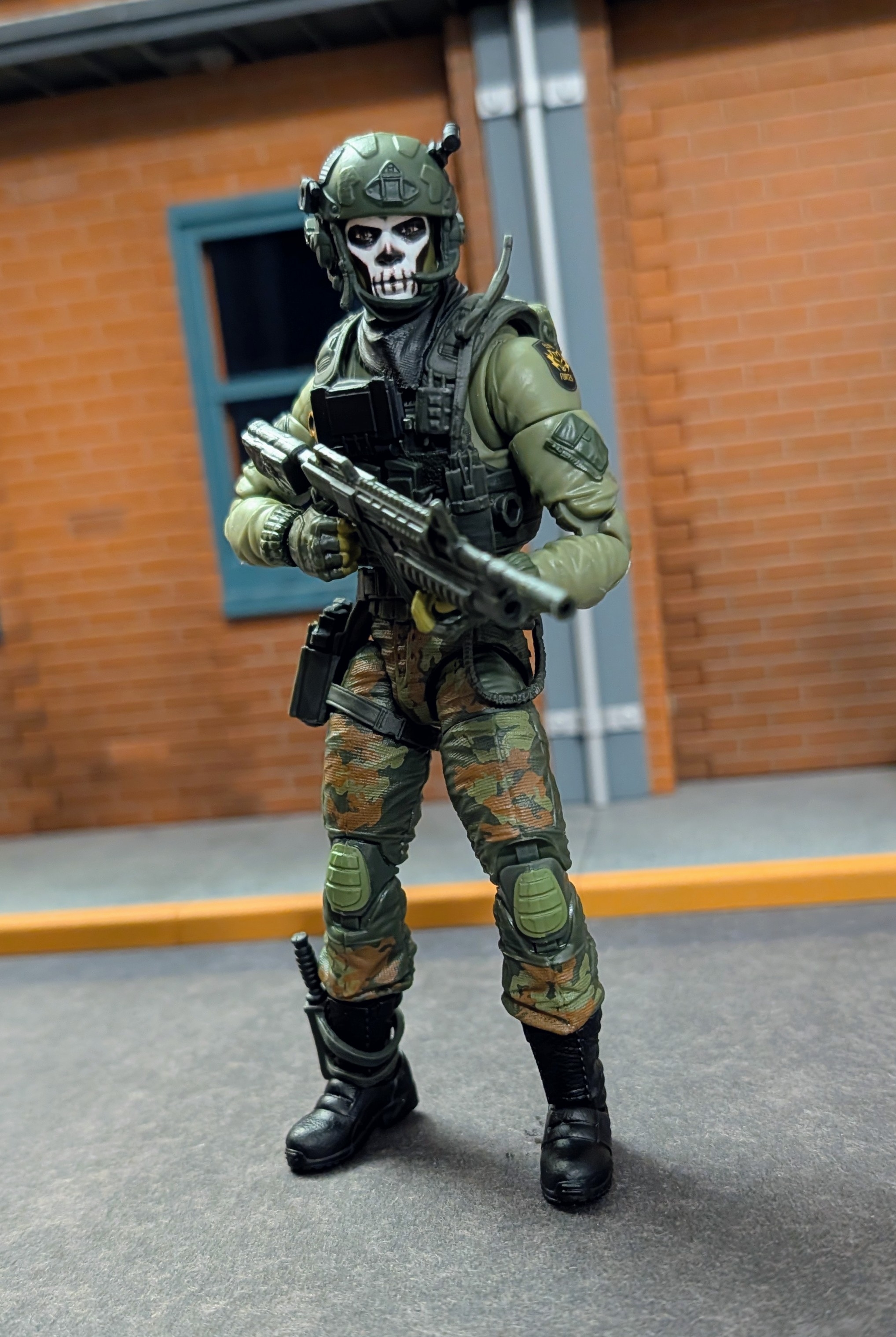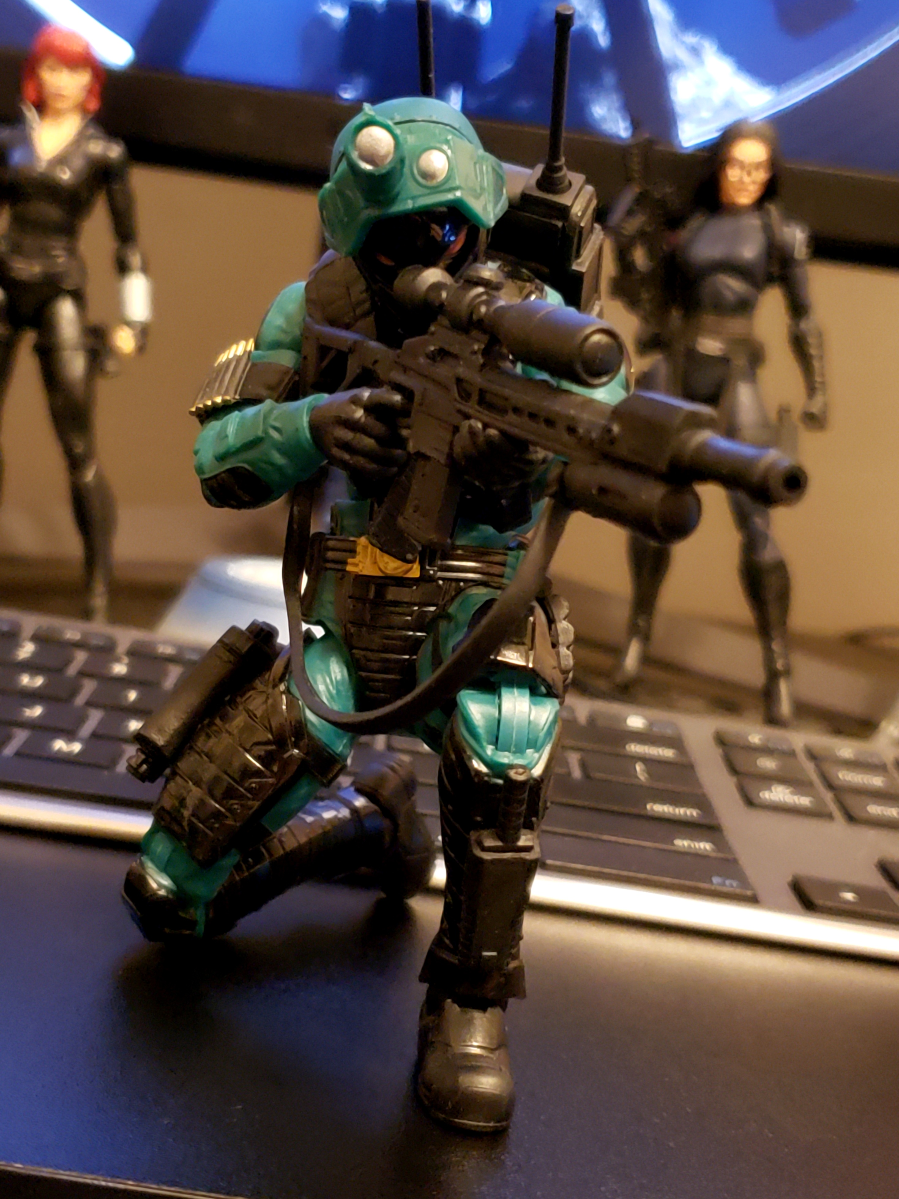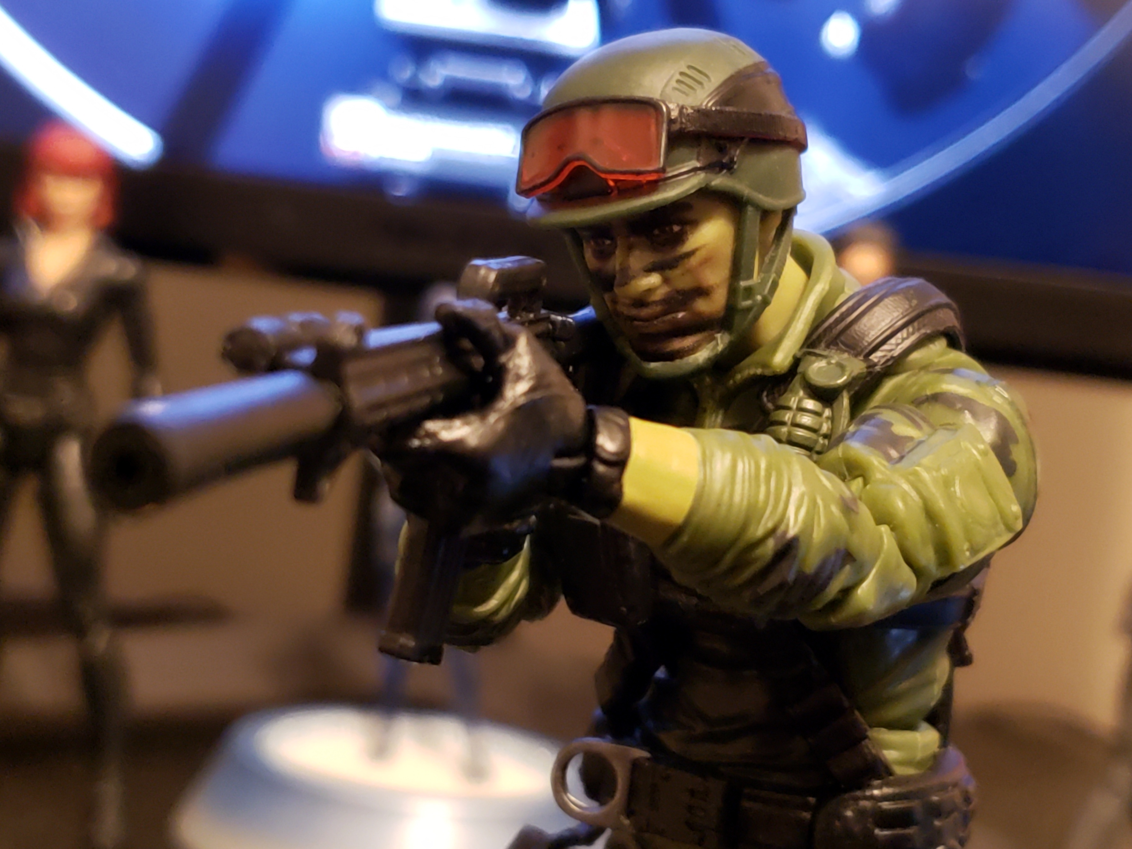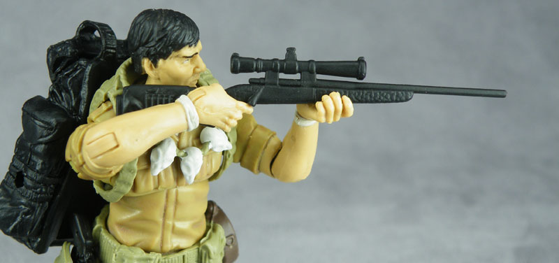 >>11741715Yeah, he's pretty good out of the box. I cut a notch out of his collar and did some trimming on the head and neck to make prone shooting poses possible.